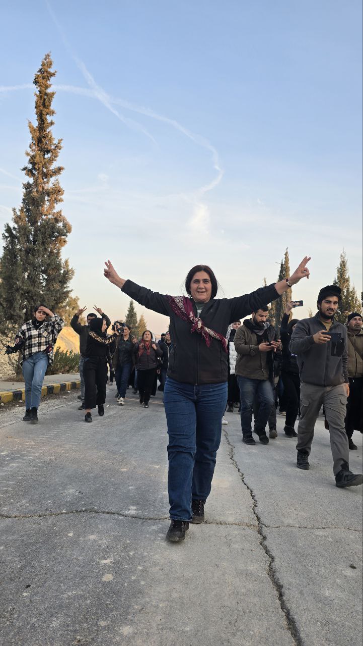 Gruplar halinde direniş alanlarına akan Tabka, Rakka ve Derazor Kantonu halkı kitlesel bir yürüyüşle alana girdi. Alana doğru yürürken sık sık ”Bijî Berxwedana QSD”, ”Bi can bi xwîn em bi te re ne Ey Serok” ve ”QSD dimeşe erd û ezman dihêje” sloganları atıldı.