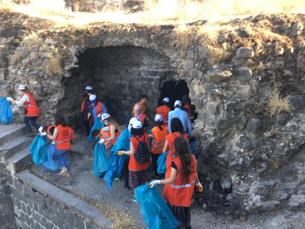 AMED – Tevgera Jinên Azad (TJA) ve Hakların Demokratik Partisi (HDP) Genç Kadın Meclisi “Sur doğadır, kadınlar doğaya sahip çıkıyor” sloganıyla Sur belediye eşbaşkanı Filiz Buluttekin ile meclis üyelerinin katılımıyla Sur ilçesinin cadde ve sokaklarını temizlendi. HDP Genç Kadın Meclisi’nden Merve Öztep temizlik öncesi kısa bir açıklama yaparak, Sur’a sahip çıkılması için sokağa çıktıklarını ve topluma duyarlılık çağrısında bulunmak için alanda olduklarını kaydetti. Merve, “Tarihi Surlar yok edilmek isteniyor. Bizde Surlara sahip çıkacağız ve Surlar üzerinde yürütülen politikalara karşı mücadelemizi sürdüreceğimizi belirtiyoruz” dedi.