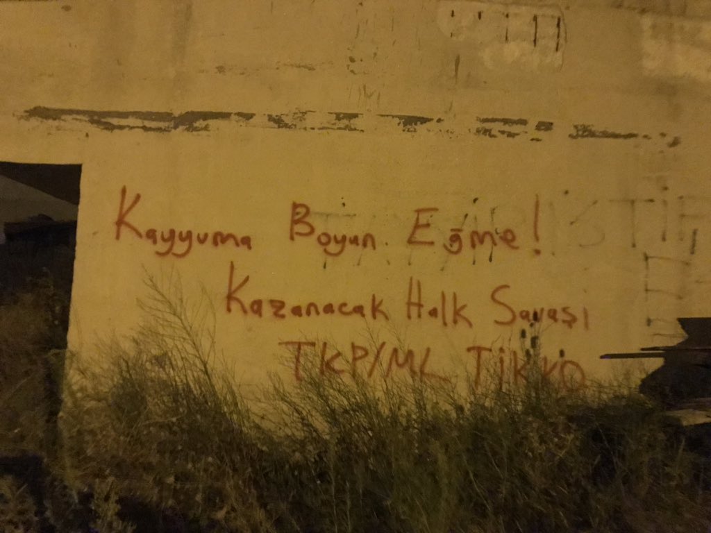 İSTANBUL – TKP/ML (Türkiye Komünist Partisi/Marksist Leninist) militanları Amed, Wan ve Mêrdîn Büyükşehir belediyelerine atanan gaspçı kayyımlara karşı yazılama çalışması yaptı.