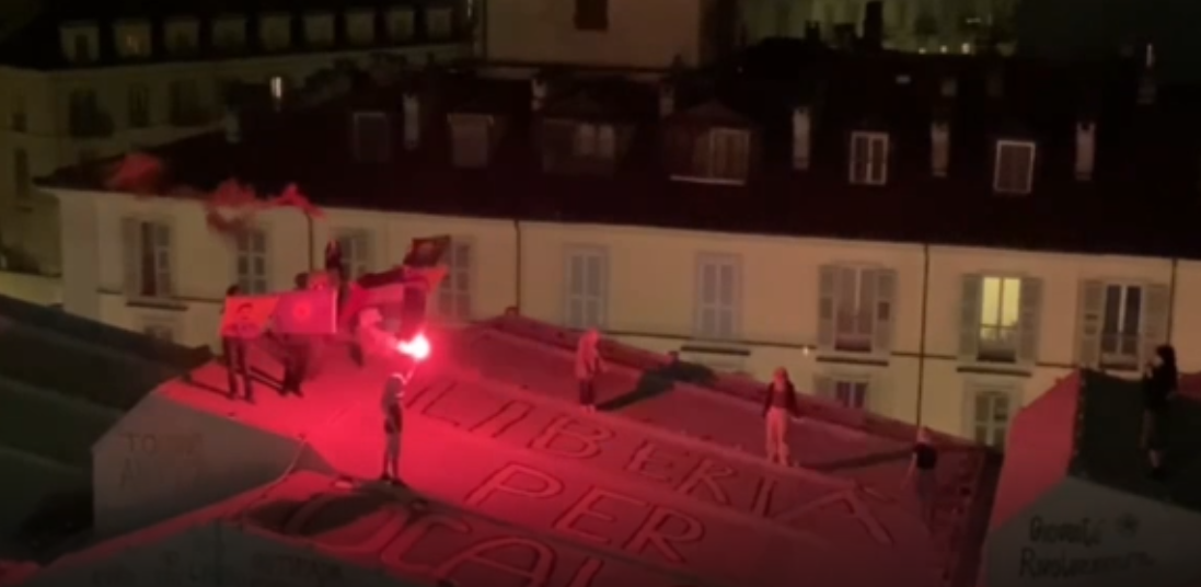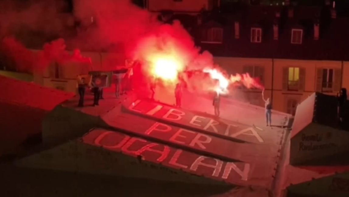 TORINO – Önder APO’nun fizki özgürlüğü için Torino’da bir araya gelen Enternasyonalist gençler ve genç kadınlar, 10 Ekim 2023 tarihinde başlatılan “Önder APO’ya Özgürlük, Kürt Sorununa Demokratik Çözüm” hamlesi kapsamında yazılama ve meşaleli eylem gerçekleştirdi.