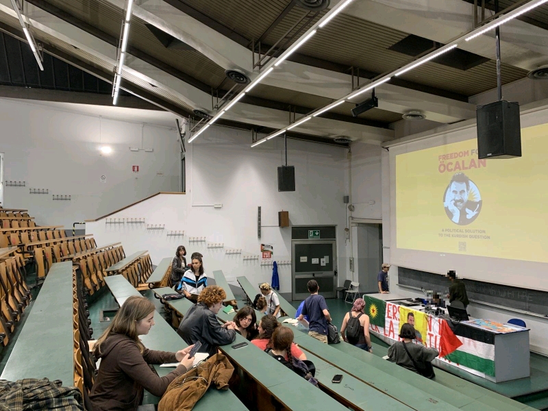Enternasyonalist gençler ve genç kadınlar Torino üniversitesinde, Önder APO’nun perspektifleri ile; kadın özgürlüğü ve 3. Dünya savaşı sorunlarını tartışmak üzere seminer haftası düzenledi.