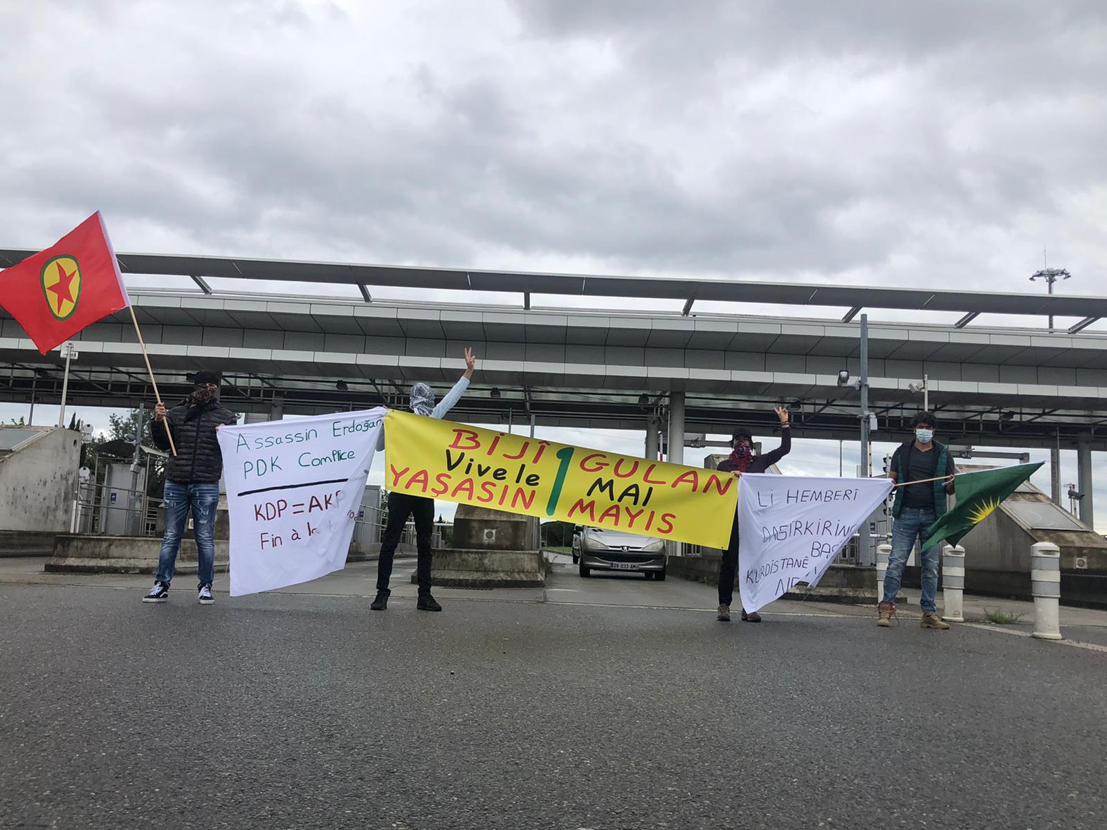 1 Mayıs İşçi ve Emekçilerin Birlik, Mücadele ve Dayanışma Günü’nü kutlama amacıyla otobanı trafiğe kapatan Kürt gençleri “Yaşasın 1 Mayıs” yazılı bir pankart açtı. Bunun yanı sıra faşist soykırımcı TC devletinin işgal planlarını ve KDP’nin işbirlikçi ihanetçi çizgisini de protesto etti.