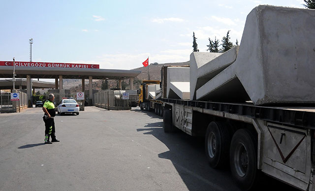 Bu kapsamda İdlib’e beton blok sevkiyatı yapılıyor. Her biri 12 ton ağırlığında, 4 metre yüksekliğindeki beton blokların yüklü olduğu TIR’lar, Suriye sınırındaki Hatay’ın Reyhanlı ilçesinde bulunan Cilvegözü Gümrük Kapısı’na geldi. Beton blokların bulunduğu TIR’lar, öğle saatlerinde sınırdan Suriye tarafına geçerek İdlib’e gitti.