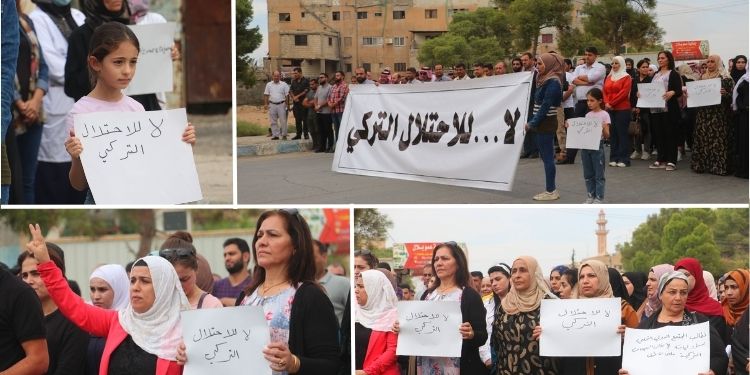 Açıklama şehir merkezinde gerçekleştirildi. Çok sayıda kişinin katıldı basın açıklamasında kalabalık, “İşgale Hayır” yazılı pankartlar taşıdı.