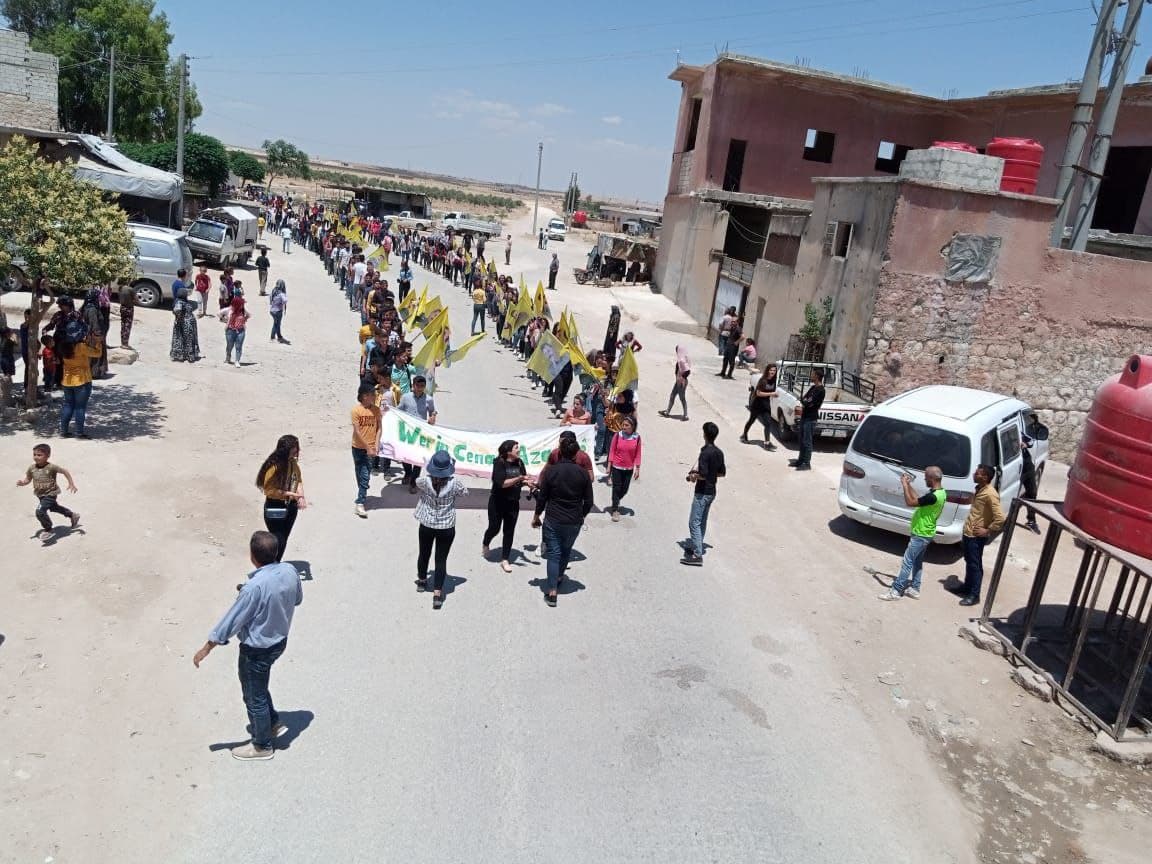 ŞEHBA – Efrîn Bölgesi Demokratik Toplum Eğitim Komitesi (KPC-D), “Özgürük Savaşına Katılın” sloganıyla Şehba kantonuna bağlı Ehdas ilçesinde yürüyüş düzenledi. Yürüyüşte işgalci Türk devletinin Başûrê Kurdistan ve Maxmûr’a yönelik saldırıları protesto edildi. Yürüyüş Ehdas merkezinde bulunan parkta mitinge dönüştü.
