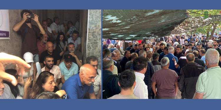 Yeşil Sol Parti Riha Milletvekili Dilan Kunt Ayan’ın içinde yer aldığı kitle ise, parti binası girişinde kalkanlarla ablukaya alındı. Kitle, “Bijî berxwedana Rojava” sloganları ile ablukaya tepki gösterdi. Polisler, kitleye kalkan, cop ve biber gazıyla saldırdı.