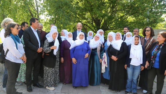 Engellemelere karşı, “Çözüm için buraya geldik” vurgusu yapan anneler ise, “Bizi biraz dinleyin çocuklarımız zindanlarda. Konuşmamıza dahi izin vermiyorsunuz. Herkese genel af çıkartıyorsunuz adam öldürenlere dahi,  bizim çocuklarımızı zindanda tutuyorsunuz. Biz tecrit kalksın diyoruz bunun için geldik. Kan dursun diye buraya geldik. Muhatabımız Adalet Bakanı’dır geçmemizi izin verin” dedi.