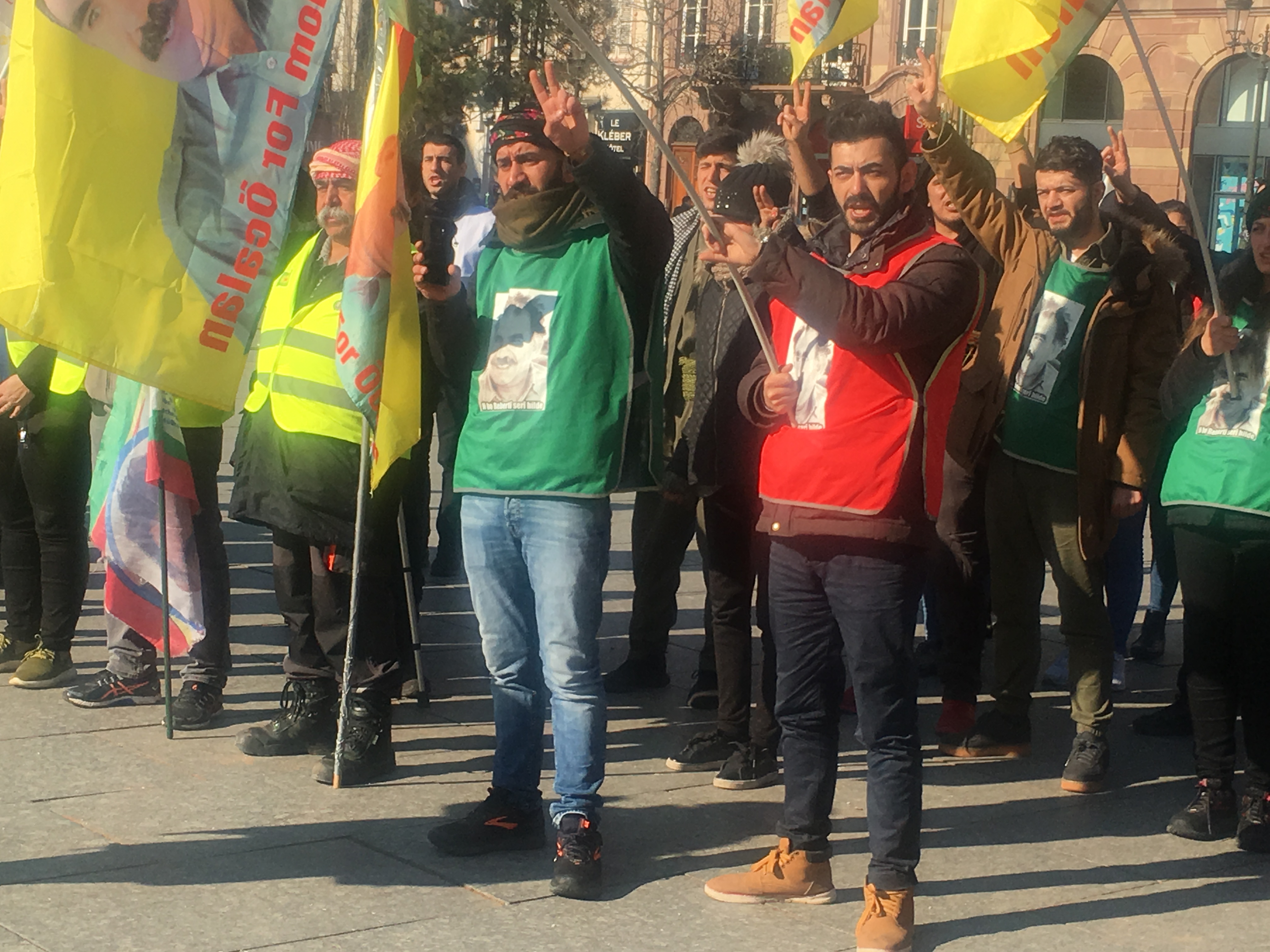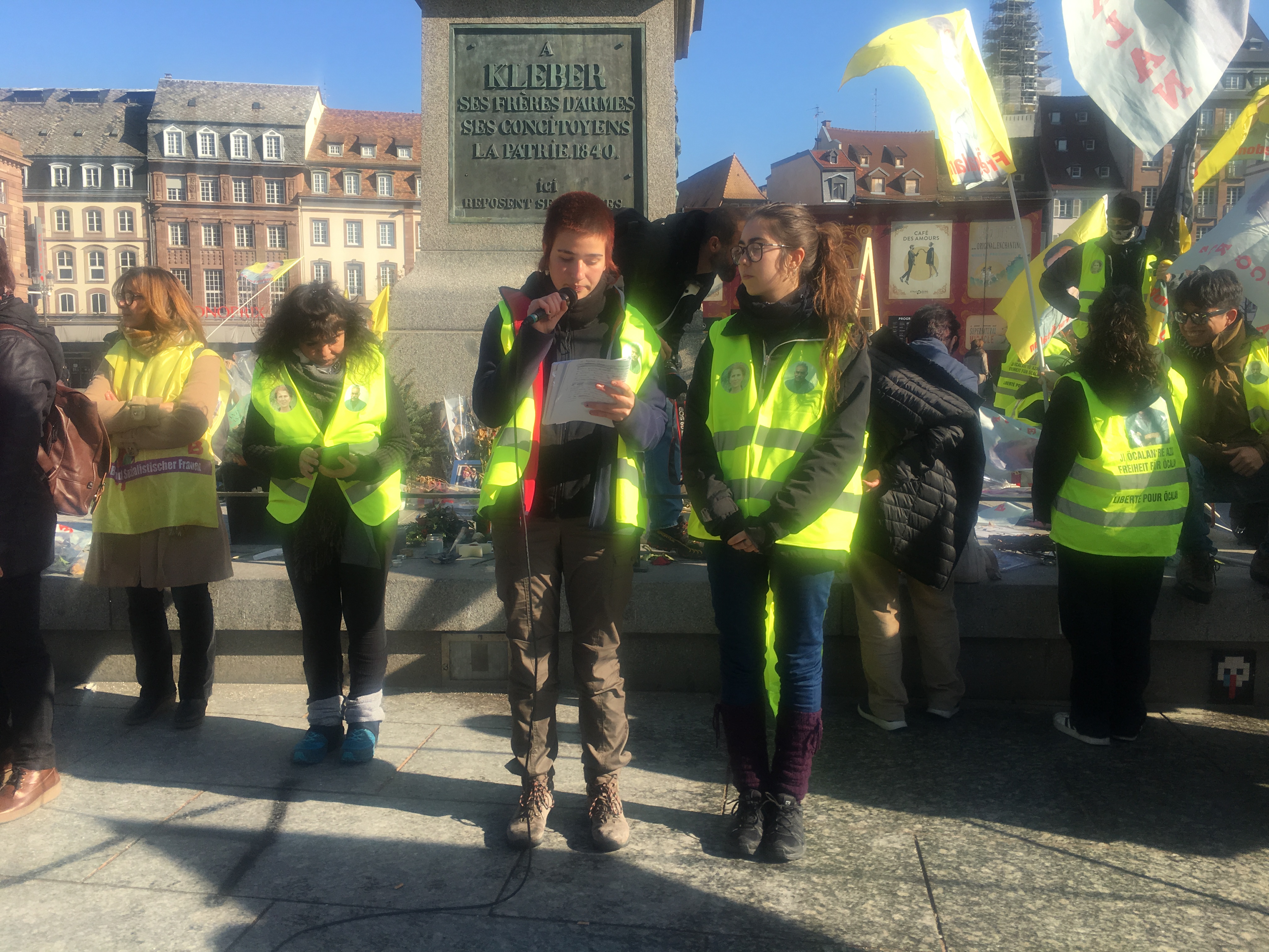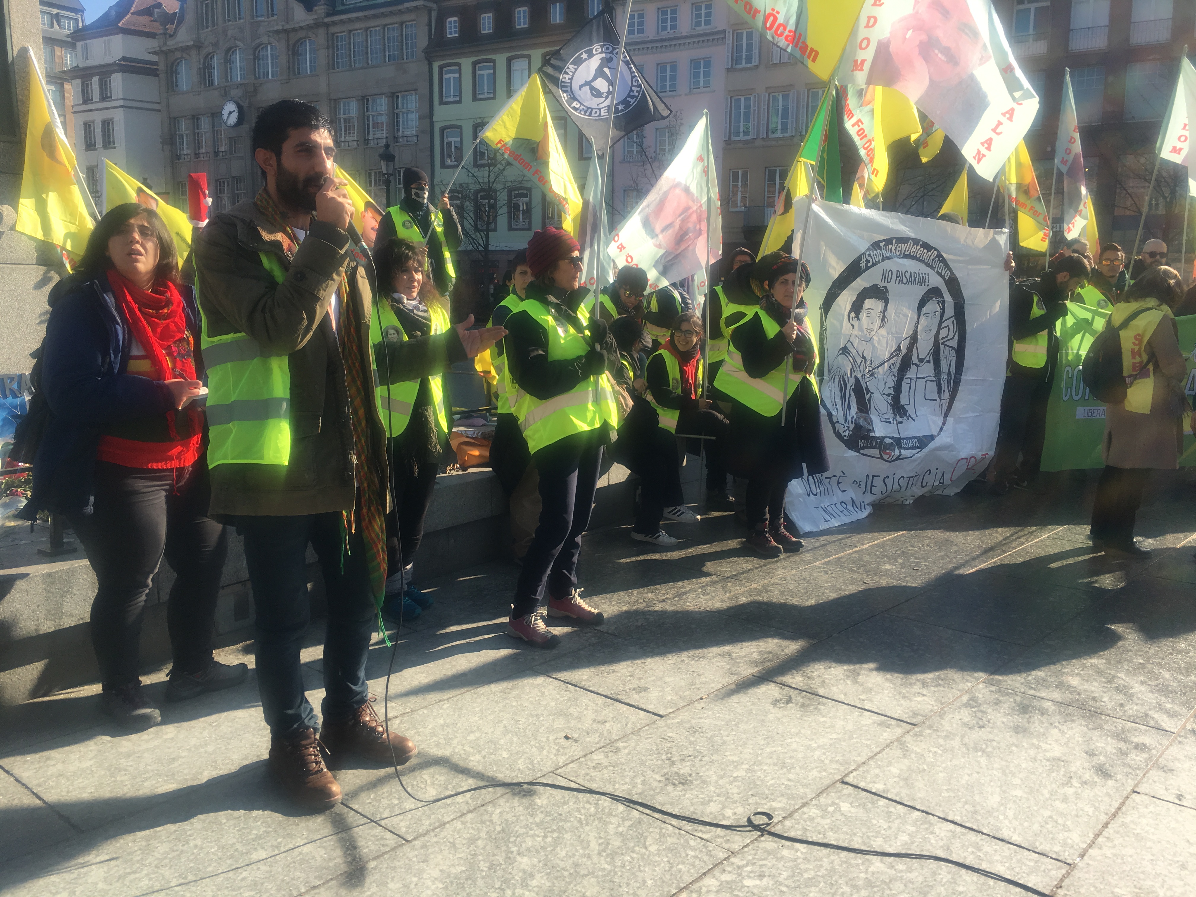 Saat 13:00’da Place Kleber’de buluşan gençlik, enternasyonalist kolları ile seçilmişler ve aydınların kolundan temsilciler kısa birer açıklama yaptılar. Gençlik adına konuşan Ferzad Ciwan, Almanya’nın faşizan tavrının kabul edilemez olduğunu belirtti. Ciwan, polisin vahşi baskılarının Türk devletiyle işbirliğinin getirdiği bir sonuç olduğunu söyledi. Gençliğin kararlı bir şekilde Halklar Önderi Abdullah Öcalan özgürleşene kadar mücadeleyi sürdüreceğini vurgulayan Ciwan Önderliğimiz özgürleşmediği sürece yaşam bize haramdır” dedi.