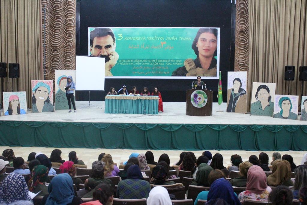 RIMÊLAN – Genç Kadın Birliği’nin (YJC) üçüncü Kongresi Cizire Bölgesi’nin Qamişlo Kantonu’nun Rimêlan ilçesinin Aram Tigran Kültür ve Sanat Merkezi’nde Rojava ve Kuzey Suriye’den 800 delegenin katılımıyla başladı. Kongrenin yapıldığı salon şehit fotoğrafları asıldı. Kongreye Kadın Bakanlığı, kadın kurumları ve Şengal’den gelen bit heyette katılıyor.