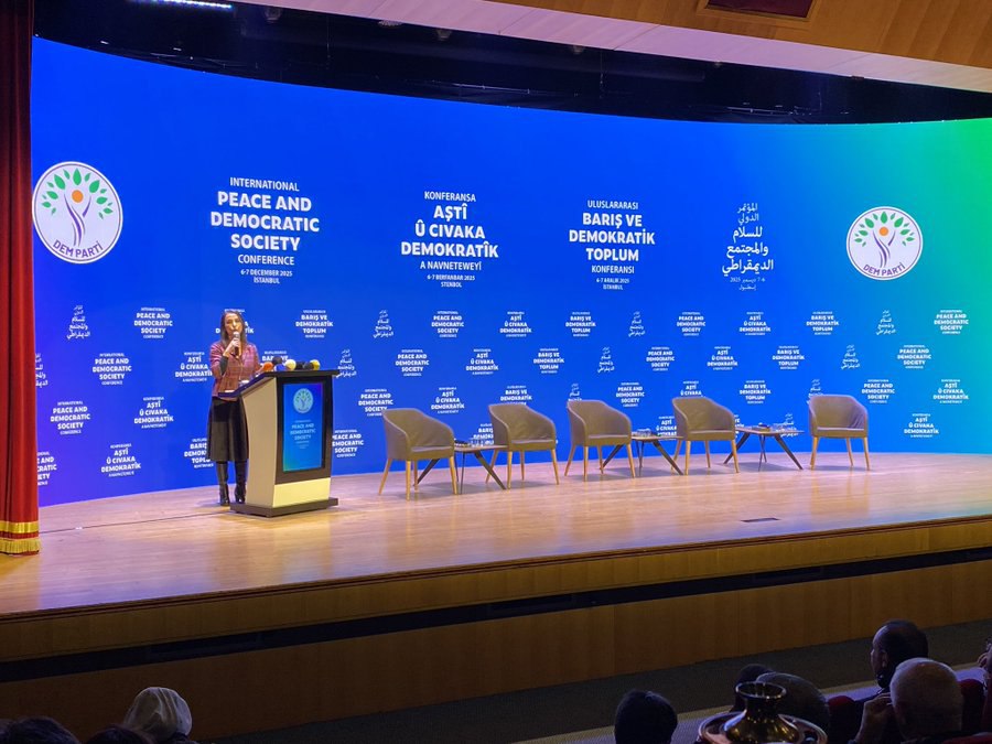 Halkların Eşitlik ve Demokrasi Partisi’nin (DEM Parti) Cem Karaca Kültür Merkezi’nde düzenlediği Uluslararası Barış ve Demokratik Toplum Konferansı’nın ikinci gününün ilk oturumu başladı.