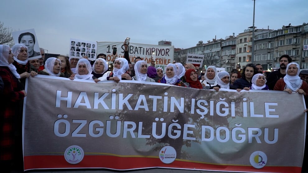 DEM Parti İstanbul İl Eşbaşkanı Arife Çınar, 15 Şubat komplosuna karşı Önder Apo, Kürtler ve kadınların teslim olmadığını söyledi. Arife Çınar, “Bugün Sayın Öcalan 27 yıldır tecrit altında. Şimdi bir süreçten bahsediliyor. Eğer barış sürecinden bahsediliyorsa bu sürecin ilerlemesi için Sayın Öcalan’ın ‘Umut Hakkı’ uygulanması lazım. Biz ‘Umut hakkı’ ilkesiyle barış koşullarının sağlanacağını düşünüyoruz” dedi.