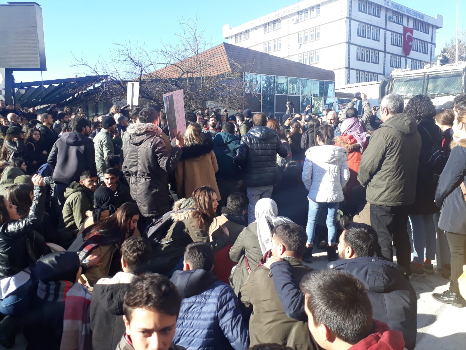 Önce kısa bir oturma eylemi gerçekleştiren öğrenciler sık sık ‘Dersim uyuma Gülistan’a sahip çık- Jin, Jiyan, Azadi-susma sustukça sıra sana gelecek- Hepimiz birer Gülistan’ız’ sloganlarını attı.