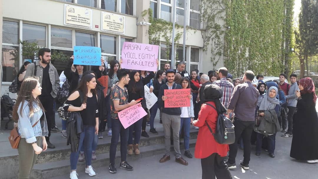 İstanbul Üniversitesi tüm bileşenleriyle beraber ana kapı önünde üniversiteyi bölen yasa tasarısına karşı eylemde #ÜniversitemeDokunma pic.twitter.com/DsPN6ED1GV