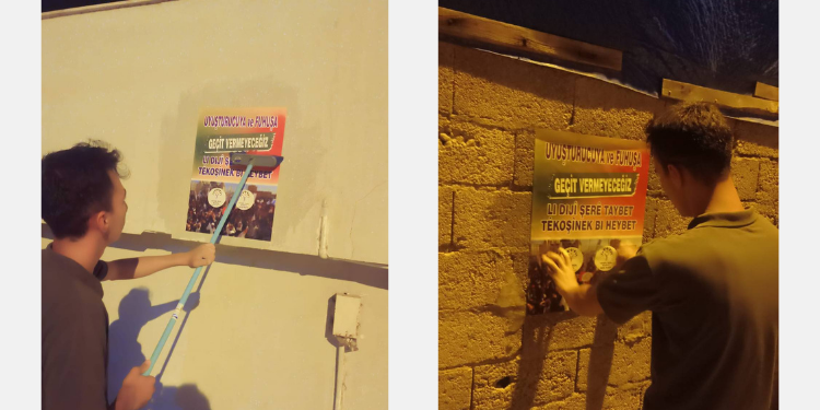 MERSİN-Yeşil Sol Parti Gençlik Meclisi üyeleri, başlatmış oldukları “LiDijî Şerê Taybet Tekoşînek Bi Heybet” kampanyası çerçevesinde Tarsus ilçesinin Barbaros mahallesinde afişleme çalışması yaptı.