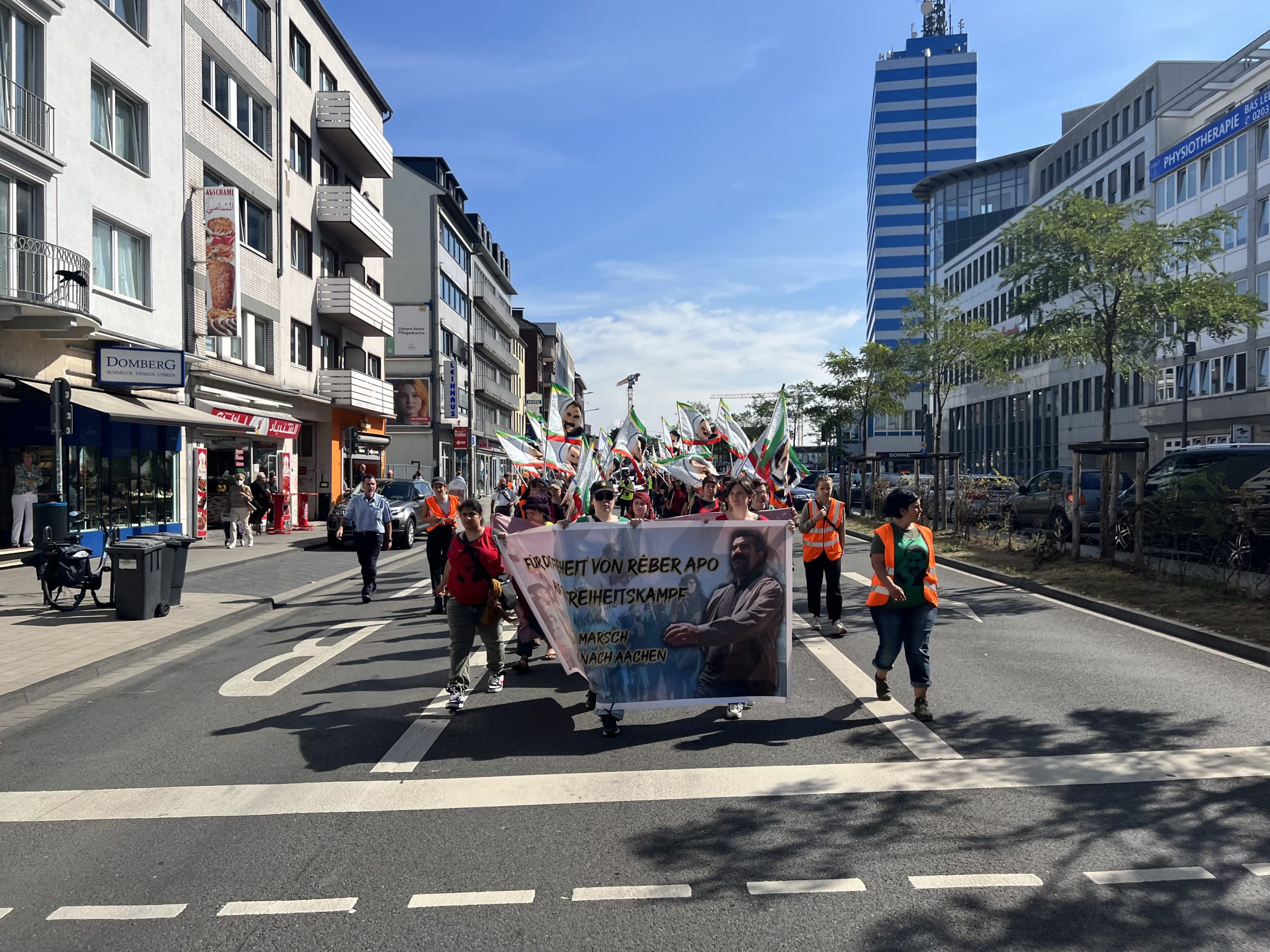 DUİSBURG – Almanya’da Kürt ve enternasyonalist gençlerin öncülüğünde yapılan “Önder APO´nun özgürlüğü için, Özgürlük Mücadelesine Gelin!” Uzun yürüyüşünün ikinci gün rotası olan Duisburg kentinden Krefeld kentine yapılacak yürüyüş başladı.