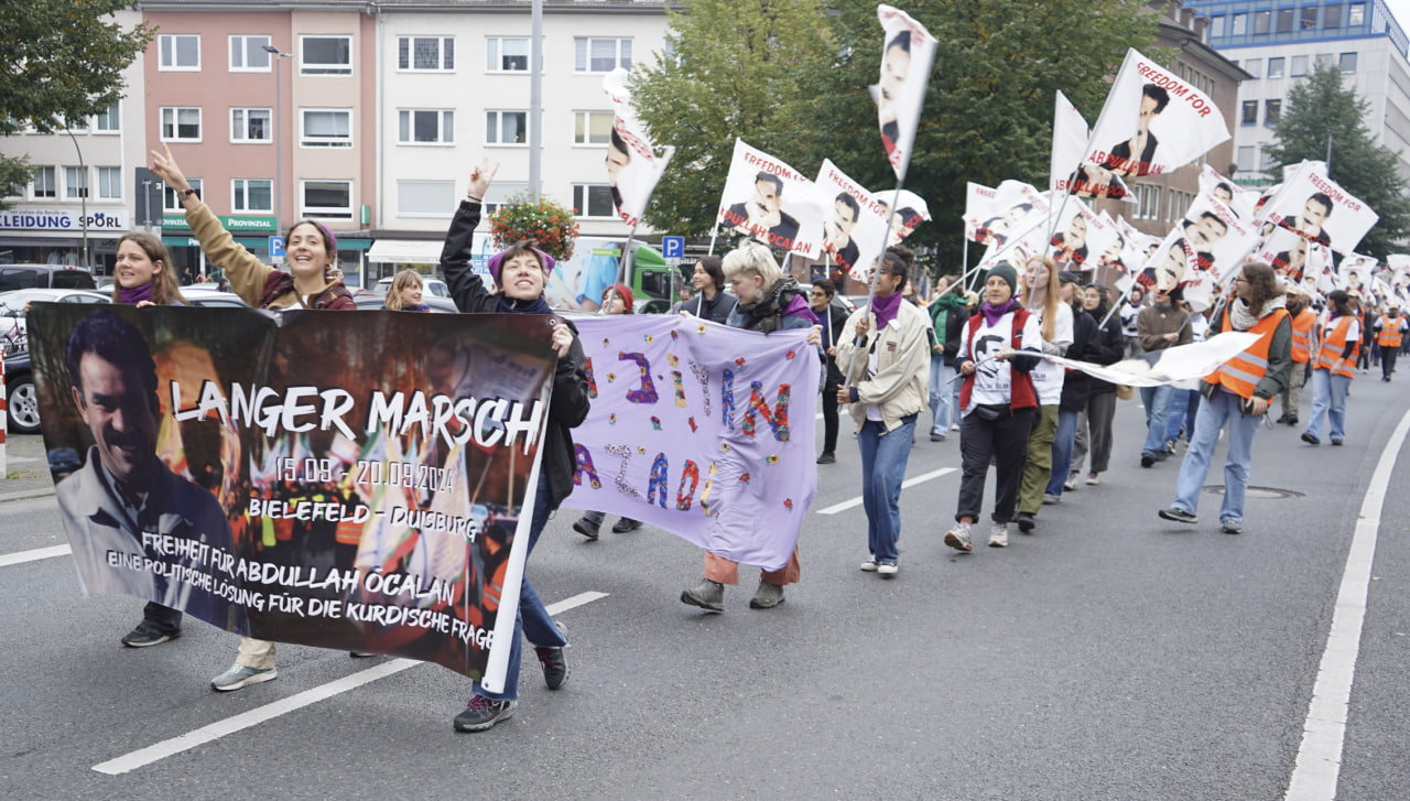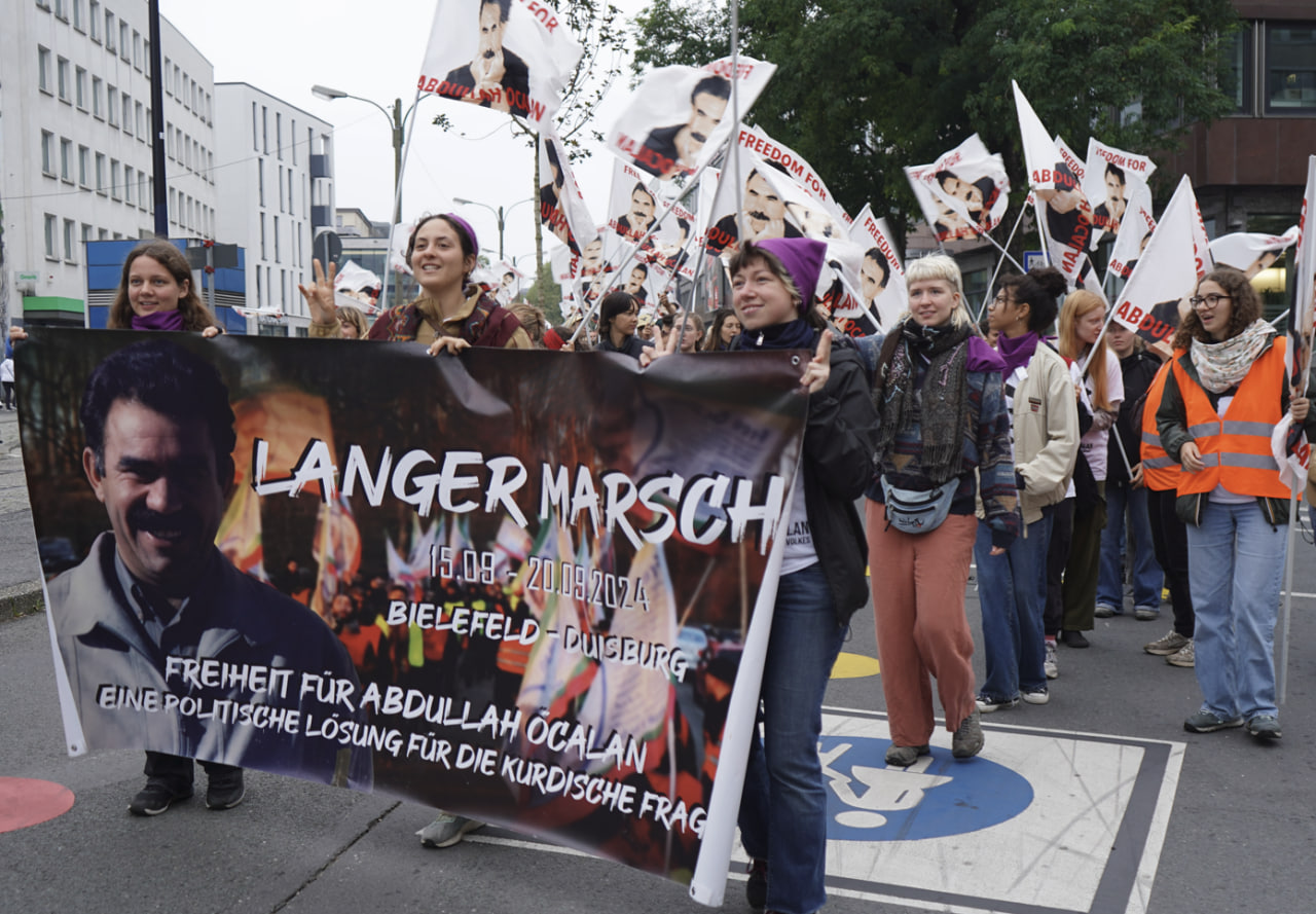 Kürdistan’lı gençler ve dostlarının başlattığı 3. Günde de Almanya sokakları “Bijî Serok APO” sloganları ile yankılandı. Civarda yaşayan halkın da yoğun ilgisiyle yürüyüşe başlayan gençler, gençlerin, çocukların selamlarını karşılıksız bırakmadı.