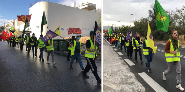 TCŞ ve Kürdistan Kültür Merkezi öncülüğüne Lavrio'dan Atina'ya 9 Ekim komplosuna karşı gerçekleştirilen uzun yürüyüş 3'üncü günde.