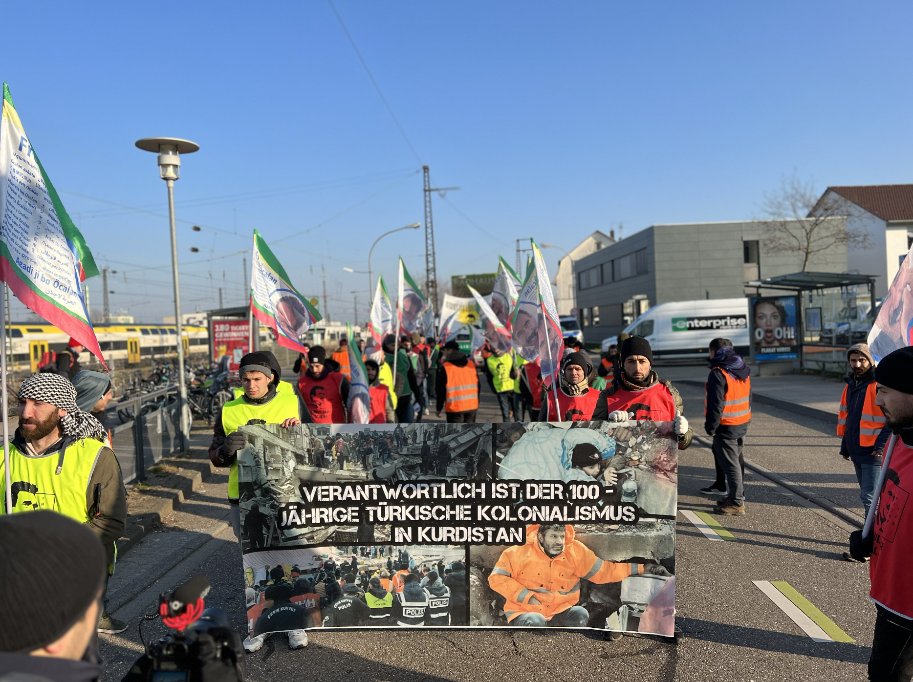 Önder APO’nun fiziki özgürlüğü için her yıl yürüyen gençler Kürdistan’da yaşanan depreme dikkat çekmek amaçlı “Faşist Türk devletinin Kürdistan’daki 100 yıllık sömürgeci politikası sorumludur” yazılı döviz açtılar. Gençler yaşanan depremden önce alınmayan önlemler için faşist Türk devletinin suçlu olduğunu ve depremin yaşandıktan sonra gerekilen yardımın gitmemesine öfkelerini dile getirdiler. Yürüyüş esnasında etraftaki ilgili halka çağrı yapan gençler aynı zamanda Önder APO’nun durumuna ilişkin bildiri dağıttılar.