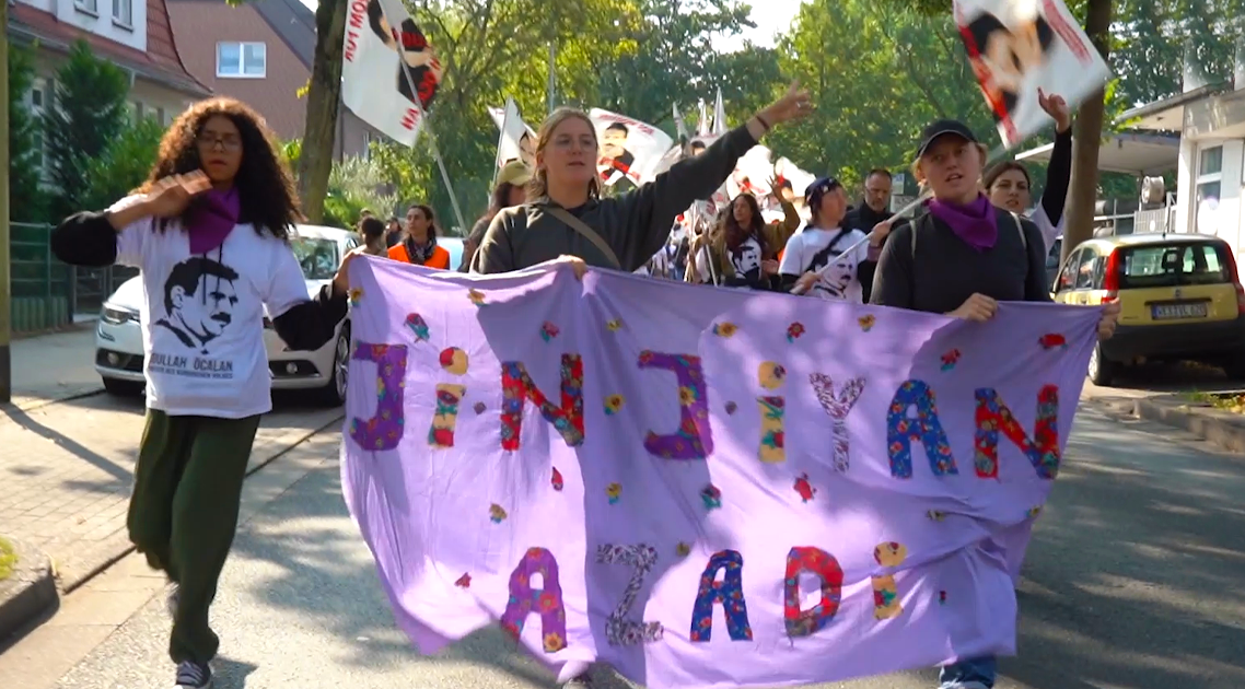 Gençler gün boyu attıkları sloganlara eşlik eden şarkılarıyla büyük bir coşku ve enerjiyle Önder APO’nun fiziki özgürlüğü için yürüyüşlerini gerçekleştirdiler. Yürüyüş boyunca çevreye dağıtılan bildirilerin yanı sıra okunan Almanca metinle de faşist TC devletinin Önder APO’ya uyguladığı ağırlaştırılmış tecrit teşhir edildi.