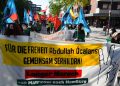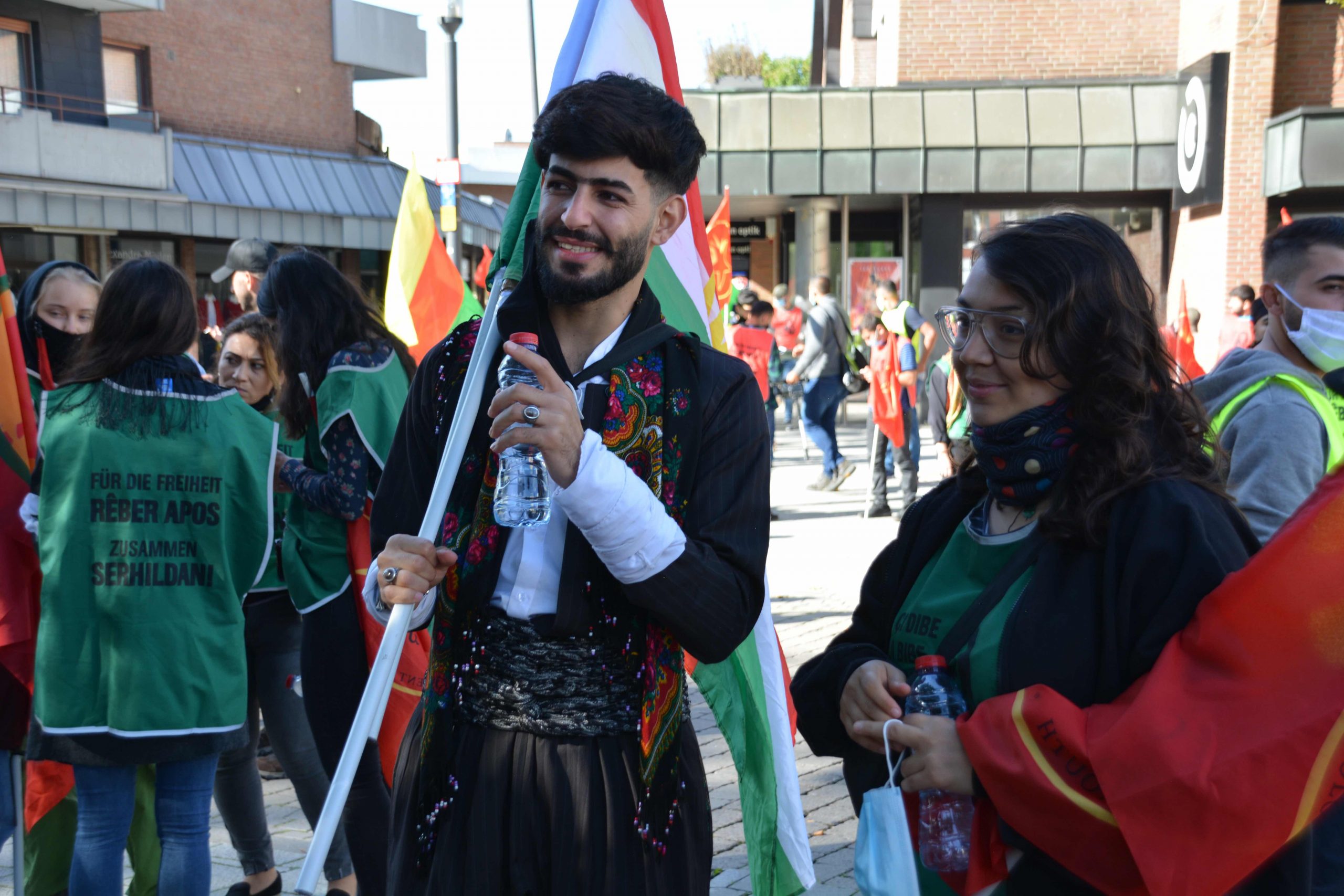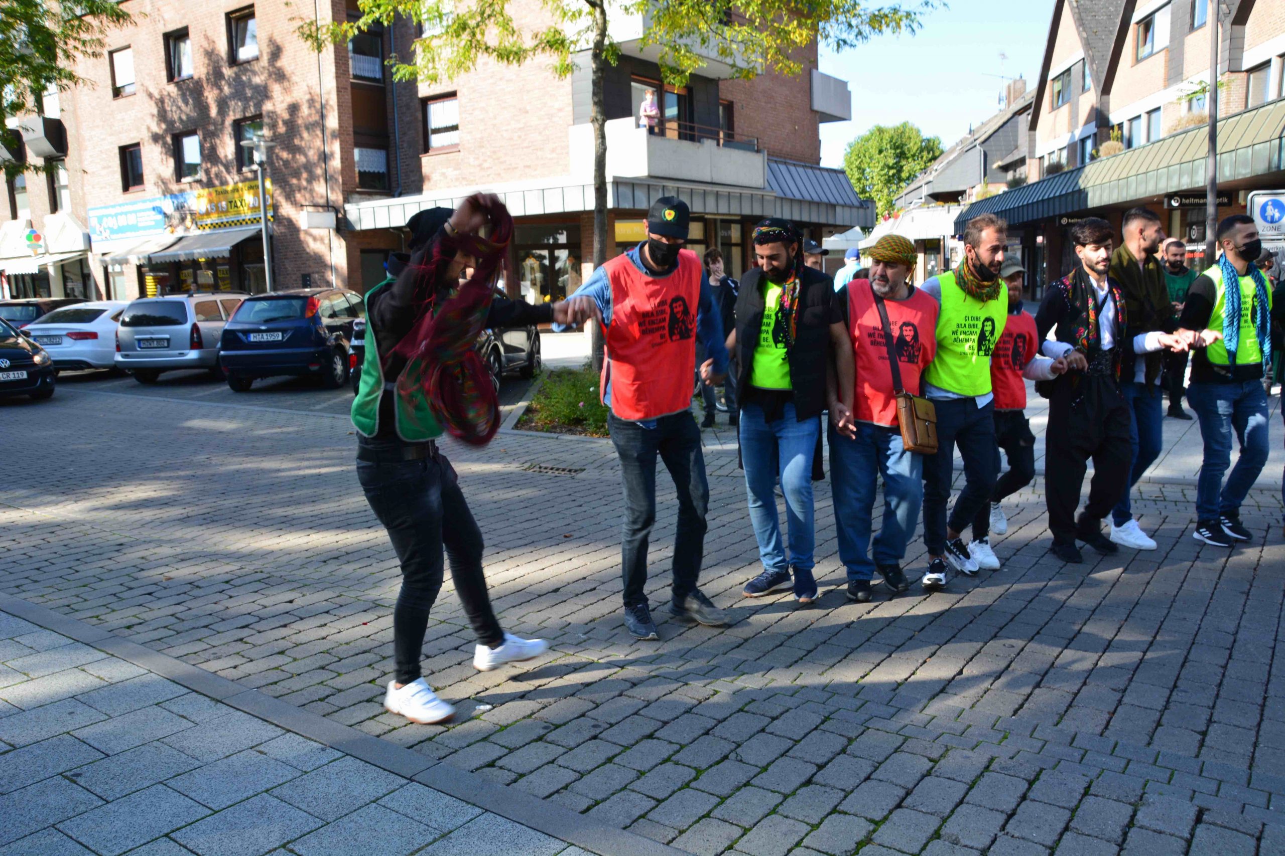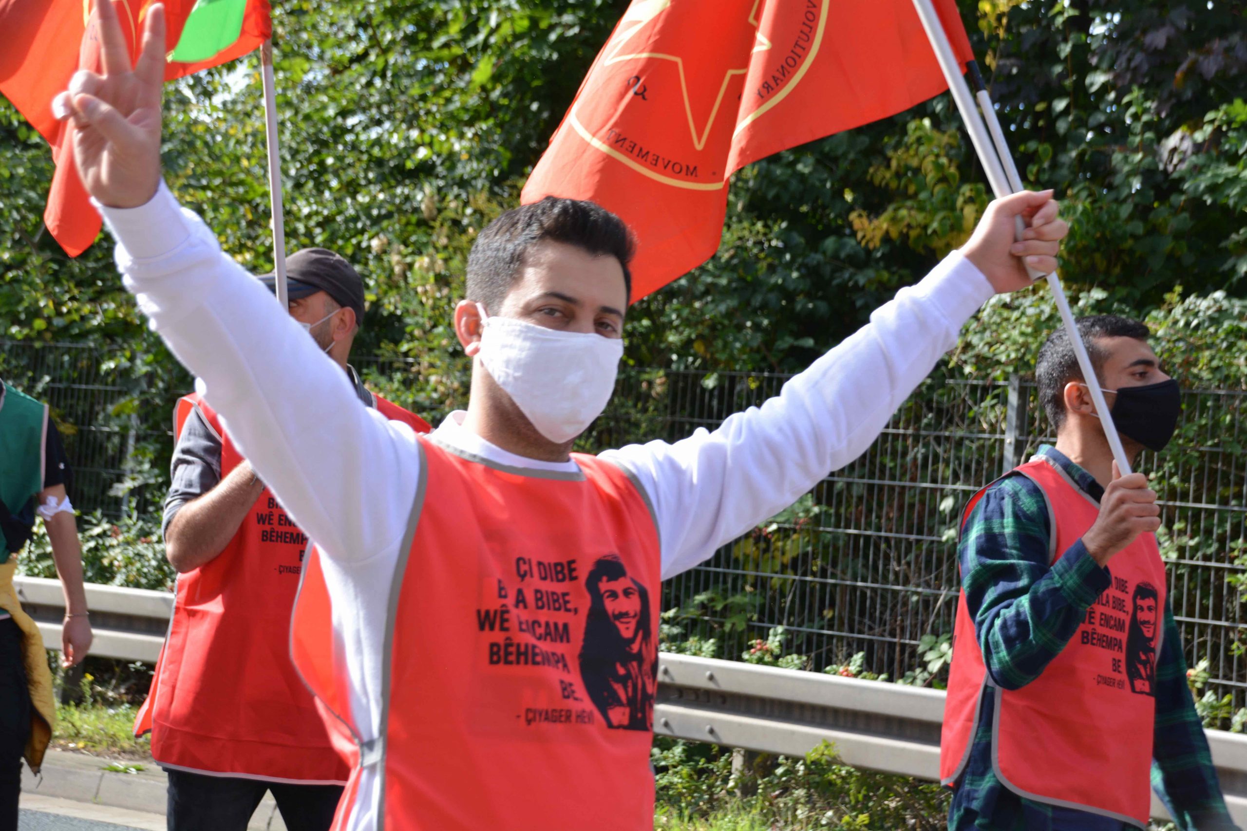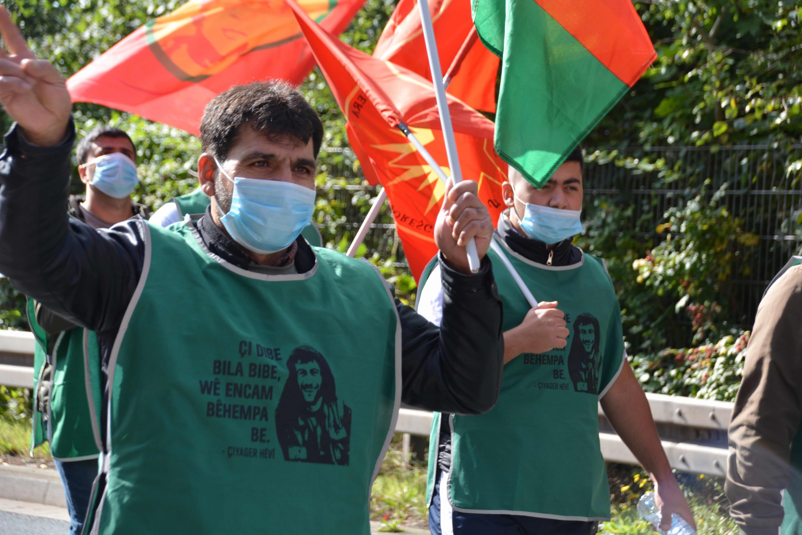 Yürüyüşün bugününde 7 Nisan 2020’de Almanya’nın Celle kentinde Alman faşistleri tarafından bıçaklanarak katledilen 15 yaşındaki Êzidî genç Arkan da anılıyor. Bu ırkçı saldırıya dikkat çekmek için, üzerinde Almanca, “Selbstorganisiert gegen Rassimus in Deutschland und überall (Irkçılığa karşı Almanya’da ve her yerde örgütlenelim” yazılı pankart açıldı.