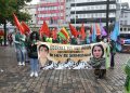 Yürüyüştei tüm yasaklamalara rağmen gençler, Almanca ve Kürtçe sloganlarıyla, Öcalan’a özgürlük istemi, Cenga Heftanîn direnişini selamlama ve Türk faşizmini protesto ve teşhir etmeye devam ediyor.