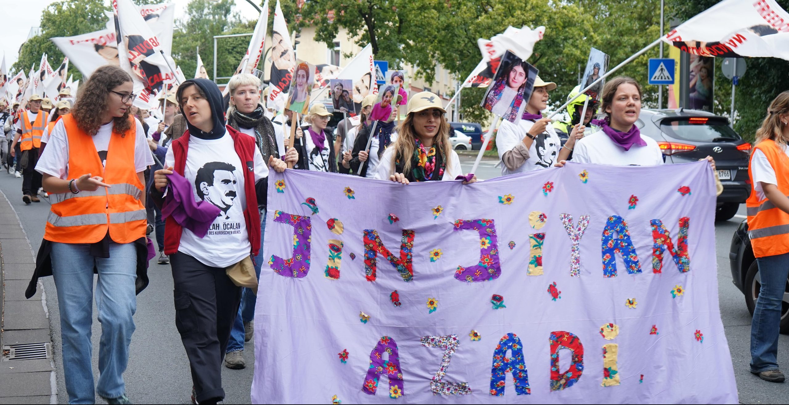 Sık sık “Bijî Serok APO”, “Be Serok Jiyan Na Be”, “Freiheit Für Öcalan”, “Jin Jiyan Azadi” sloganları atılan yürüyüş Bielefeld HBF önünde son buldu.