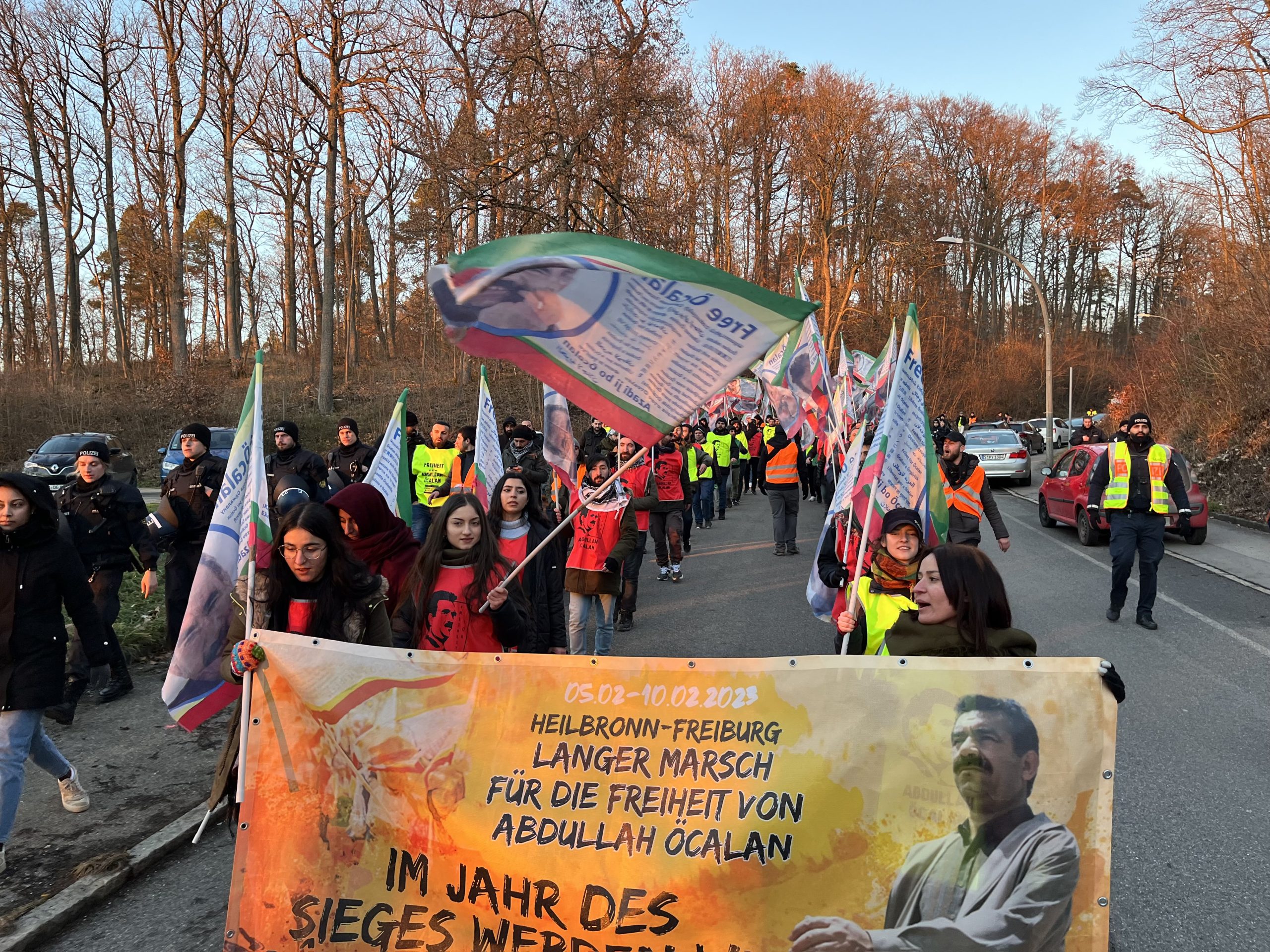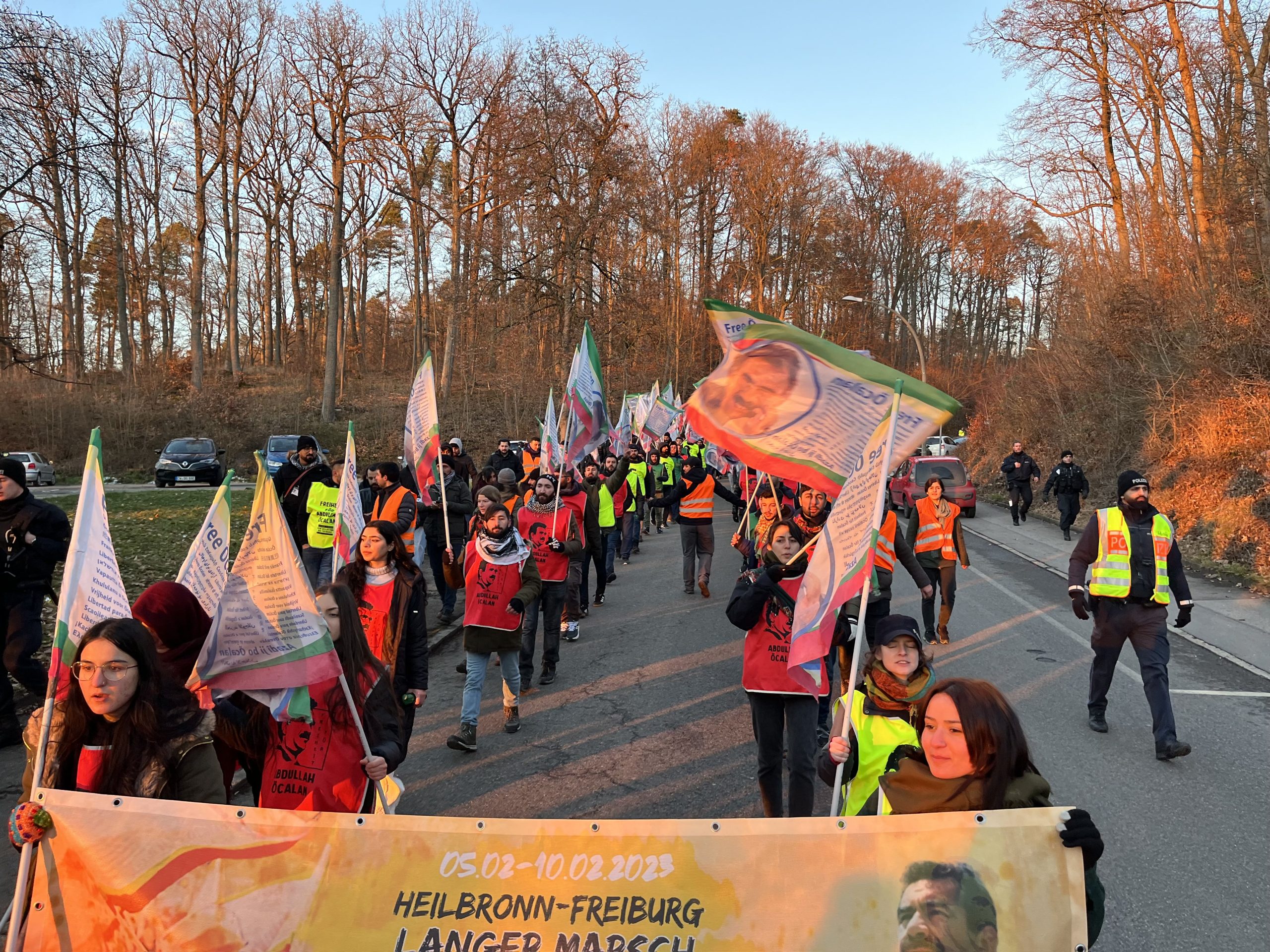 Stuttgart’tan yürüyüşlerinin üçüncü gününe başlayan gençler “Bijî Serok APO”, “Jin Jiyan Azadî”, “Be Serok Jiyan Nabe” sloganlarıyla devam ettiler. Gençler Kurdistan’da yaşanan depreme dikkat çekip tüm Kurdistan ve Orta Doğu Halkına baş sağlığı dileyip Avrupa’da yaşayan halka destek olma çağrısında bulundular.