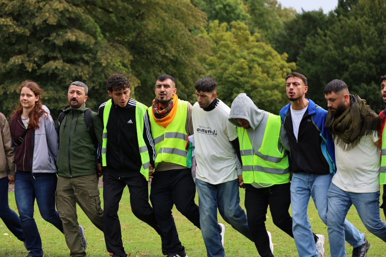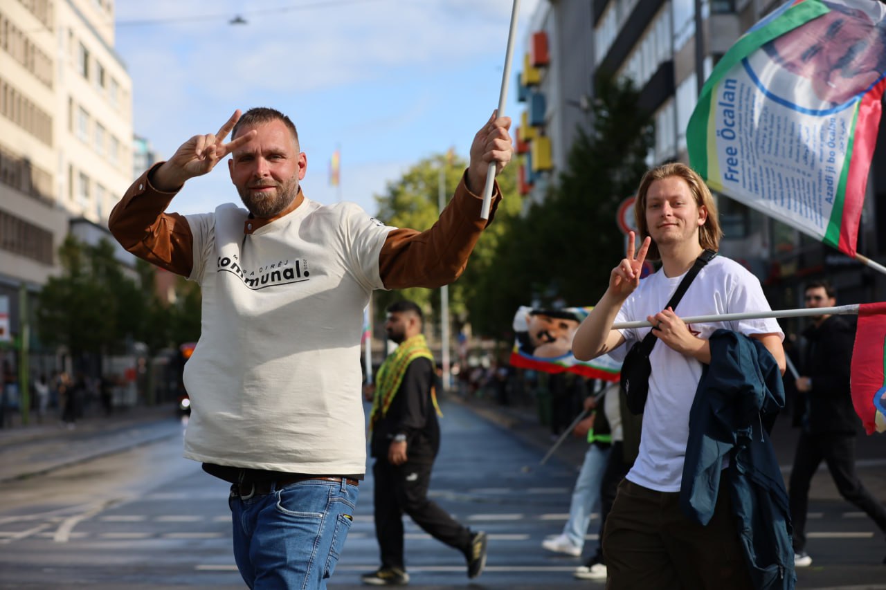 DÜSSELDORF- Uzun Yürüyüş’ün Düsseldorf etabı, etkileyici bir pankart eylemi ve ardından yapılan “Süreç ve Enternasyonalizm” paneliyle sona erdi. Yürüyüşün bitimine doğru enternasyonal gençler, pankart eylemi gerçekleştirdi. Pankartta, “Hambi’den Rojava’ya”, “Özgürlük mücadelesi uluslararasıdır – Önder APO’ya özgürlük” ve “Kim yurdunu sevmezse, onu savunamaz” denildi. Bu eylemle, yürüyüşün ana teması bir kez daha güçlü bir şekilde vurgulandı.