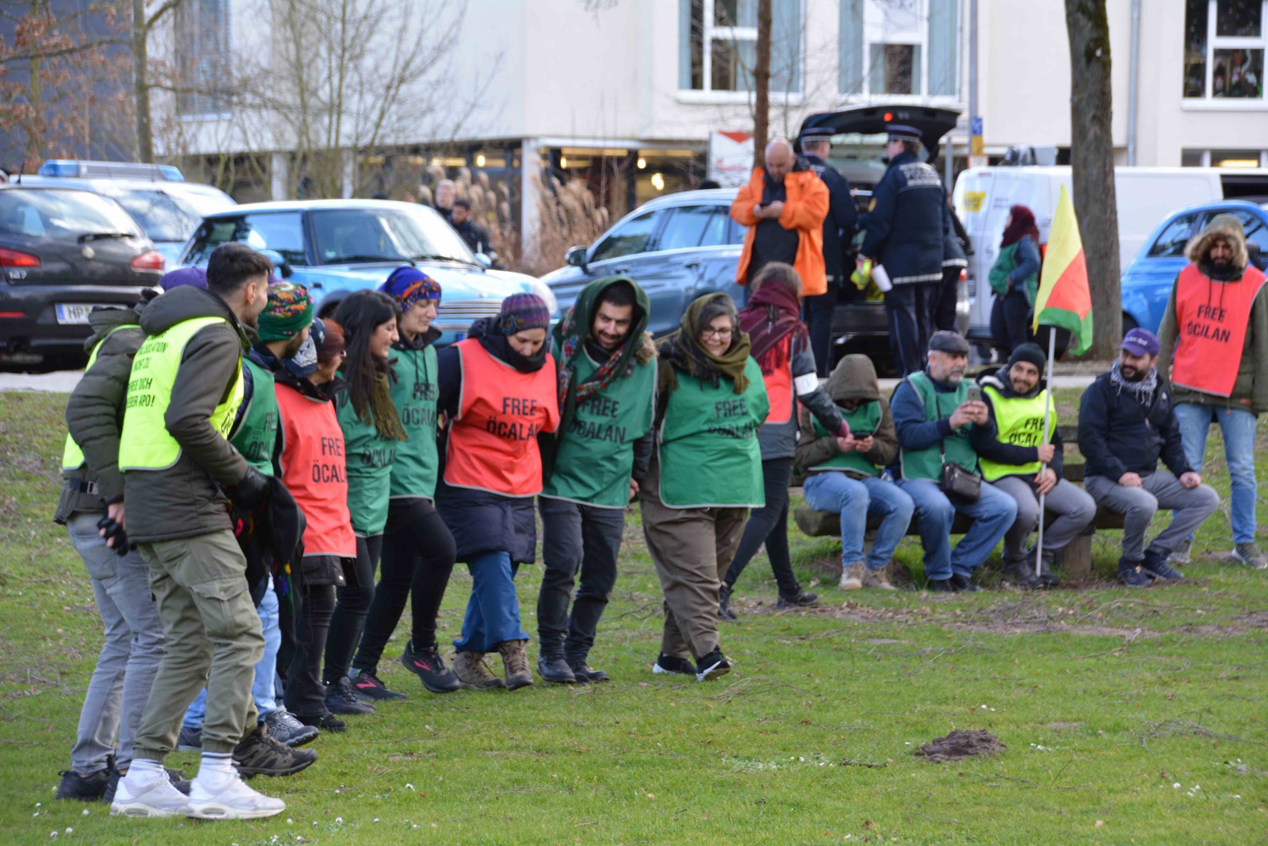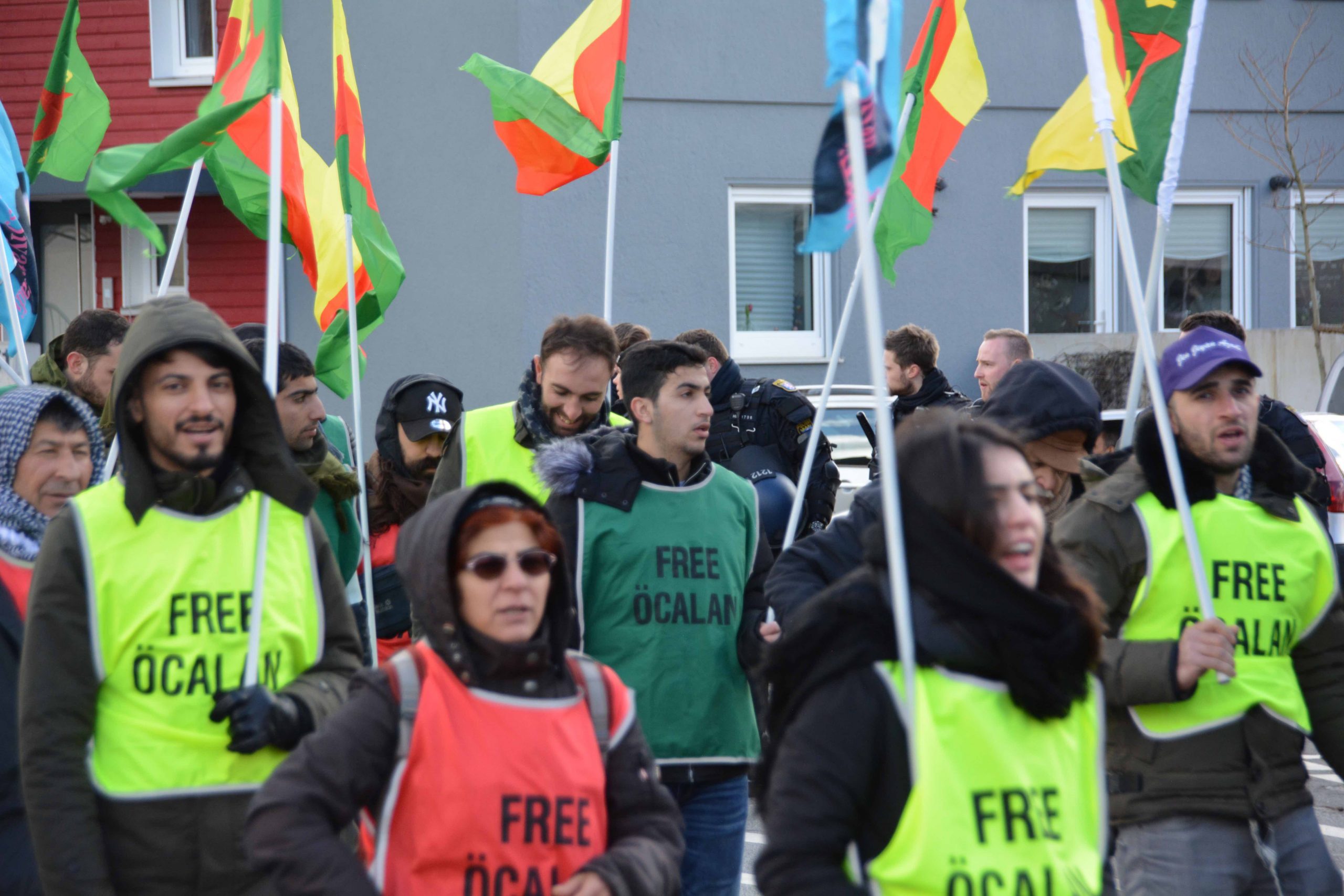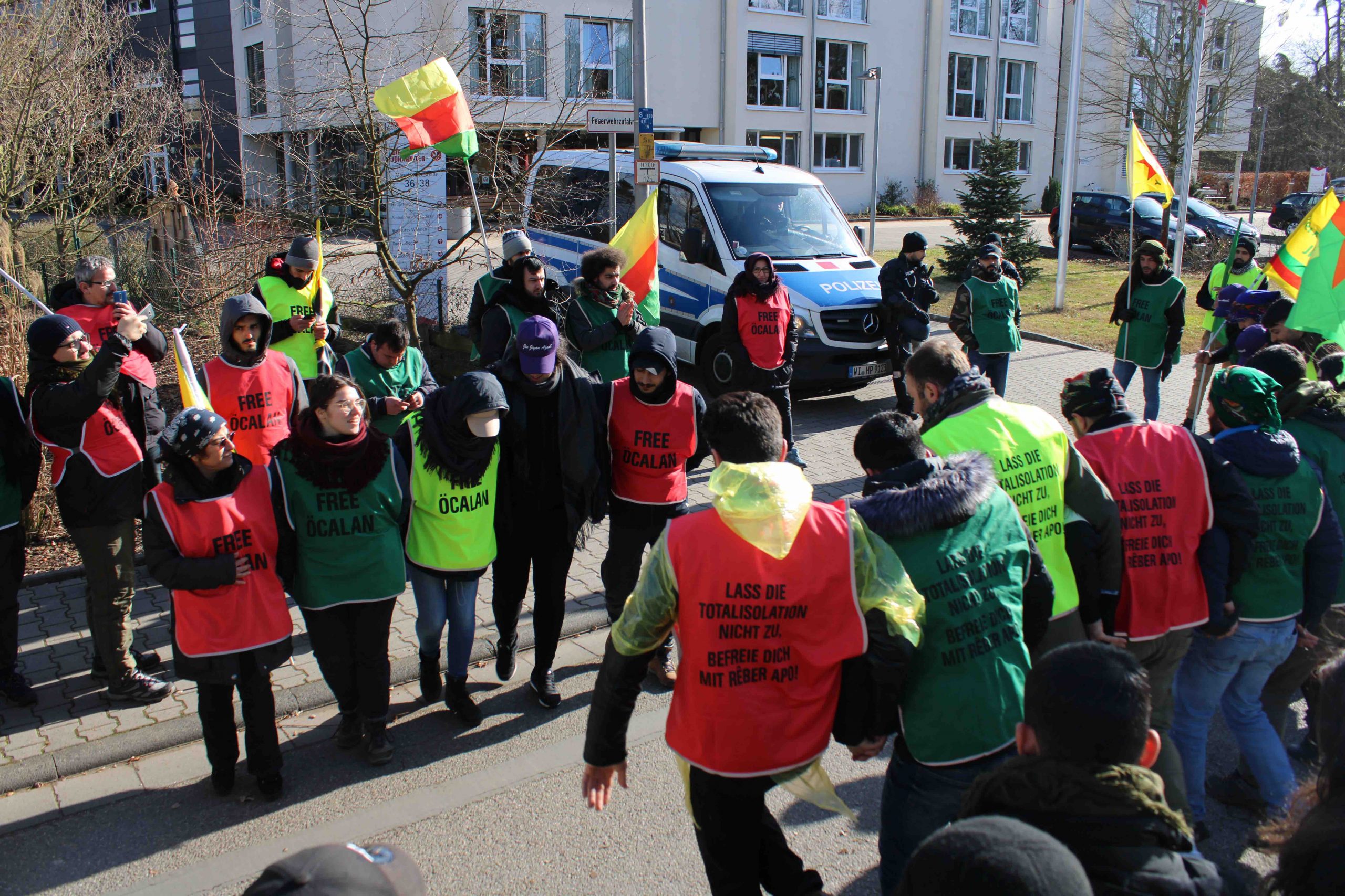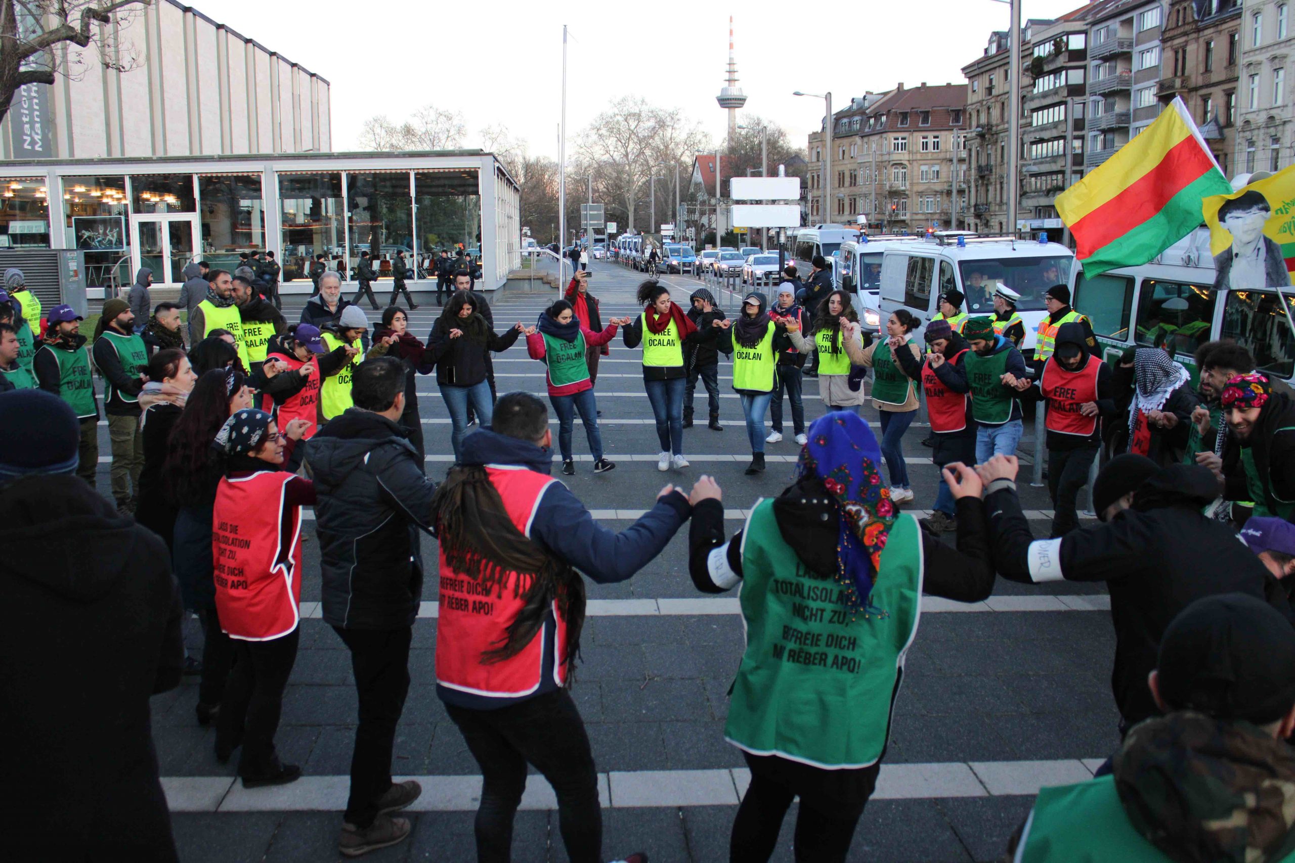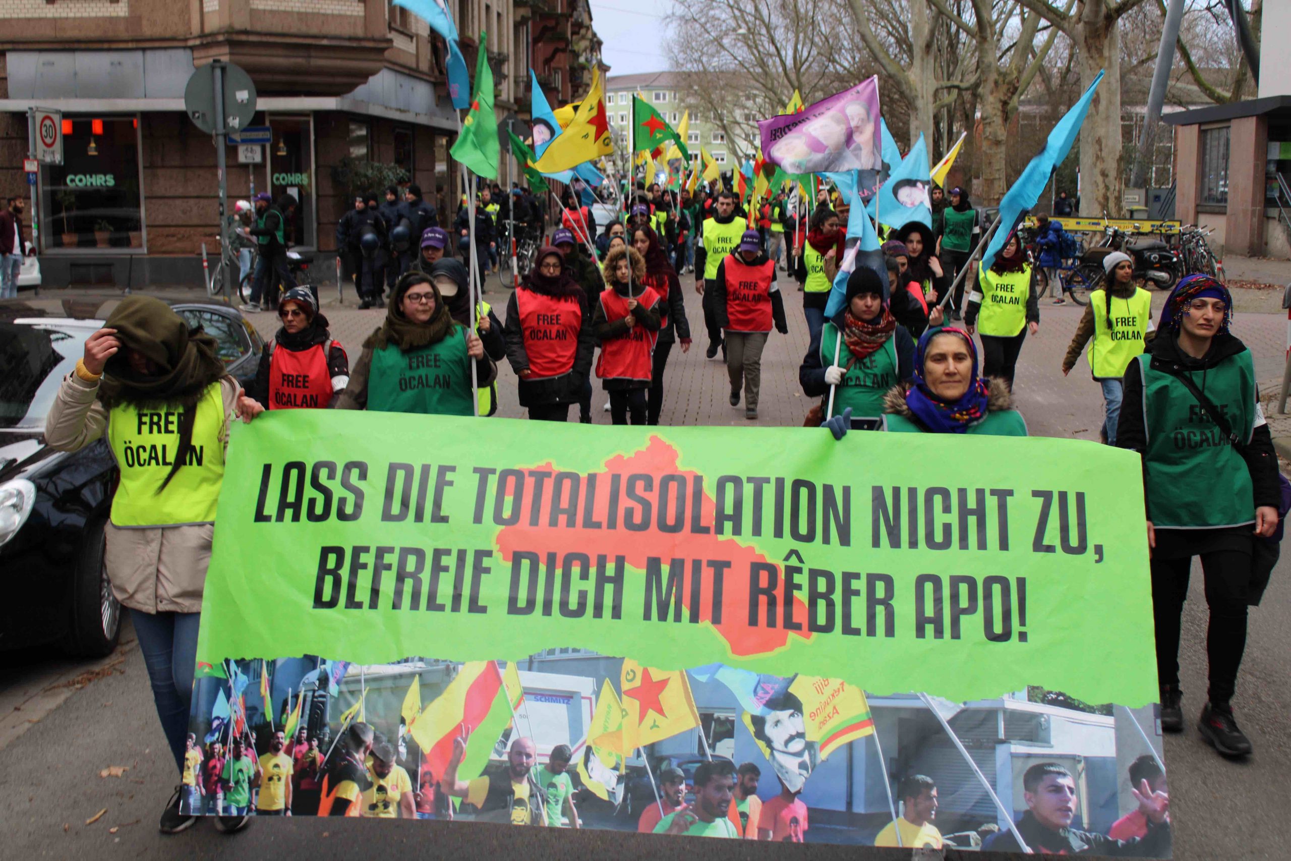 Büyük bir coşku ve kararlılıkla yürüyen gençler, bugün yine Alman polisinin provakasyonları ile karşılaştı. Zaman zaman nedensiz bir şekilde yürüyüşçüleri kameraya çeken Alman polisi, “Es Lebe Öcalan (Yaşasın Öcalan)” sloganını da yasakladı. Polisin verdiği açıklamaya göre Halklar Önderi Abdullah Öcalan’ın ‘isminin geçtiği tüm sloganlar yasaktır’ denildi. Onunla bağ kuran tüm sloganlar yasaklandı. Şu an için sadece ‘Bijî Rêber APO’ sloganı yasaklanmadı. Onun dışında içinde Halklar Önderi Öcalan’ın isminin geçtiği tüm sloganlar yasaklandı.