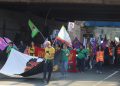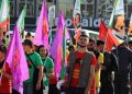 Kitle, fabrikanın önünde yapılan basın açıklamasından sonra yürüyüşünü sürdürdü.