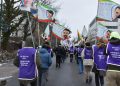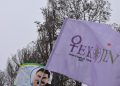 “Zaman geldi, Öcalan’a özgürlük”, “Bi Hev Re Serhildan” ve “15 Şubat’ı unutturmayacağız” pankartlarının açıldığı eylemde eylemciler, üzerinden Halklar Önderi Abdullah Öcalan’ın fotoğrafı bulunan “Zamanı geldi, Öcalan’a özgürlük” yazılı mor önlükler giydi.