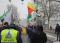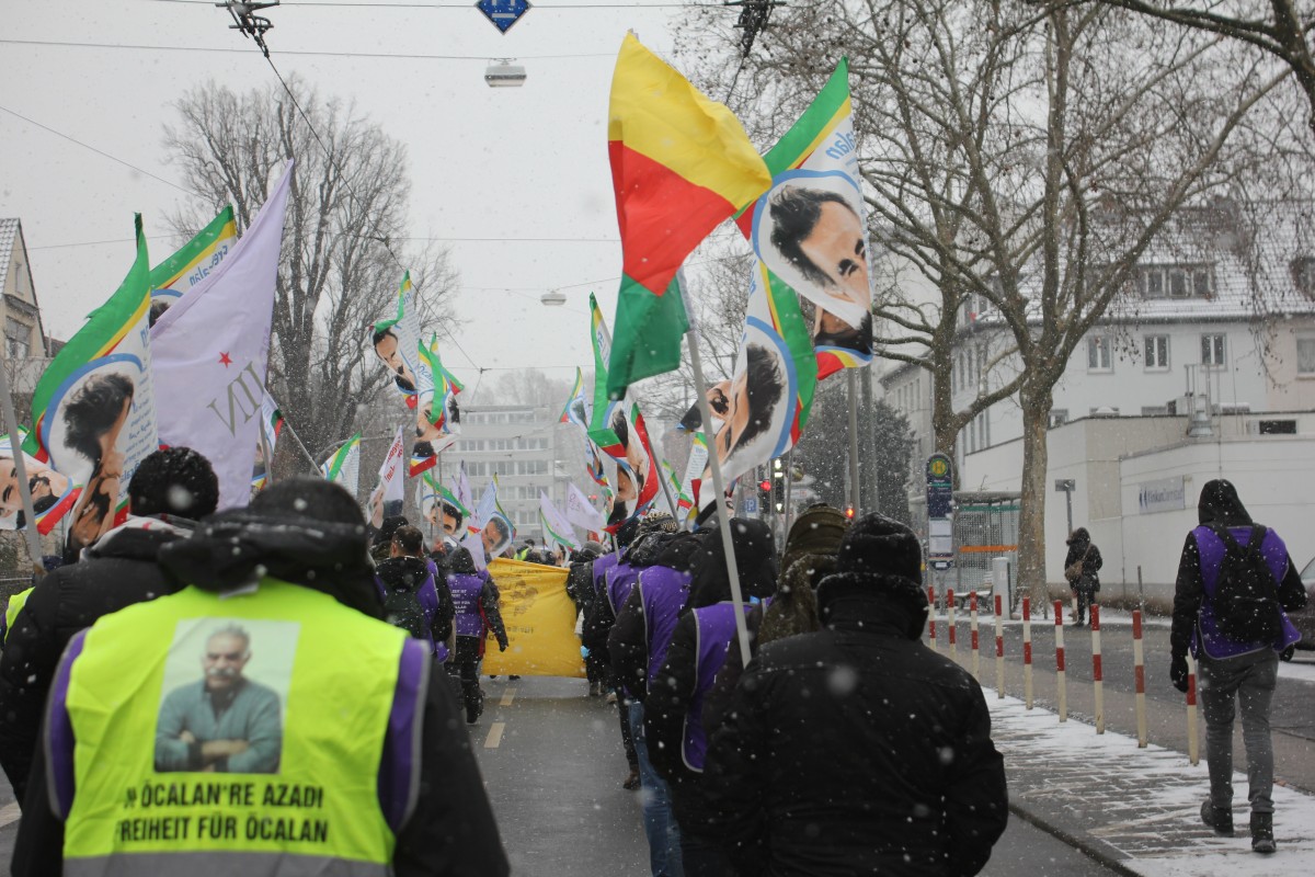 Eylem saat 14:00 da merkezi tren istasyonu önünde TCŞ, TekoJIN, Enternasyonalist gençlerin öncülüğünde Kürdistanlıların katılımı ile başladı. Eylemde Önder Öcalan’ın bayraklarını taşıyan kitle Jinên Ciwan ên Têkoşer(TekoJIN)’in bayraklarını da taşıdılar.