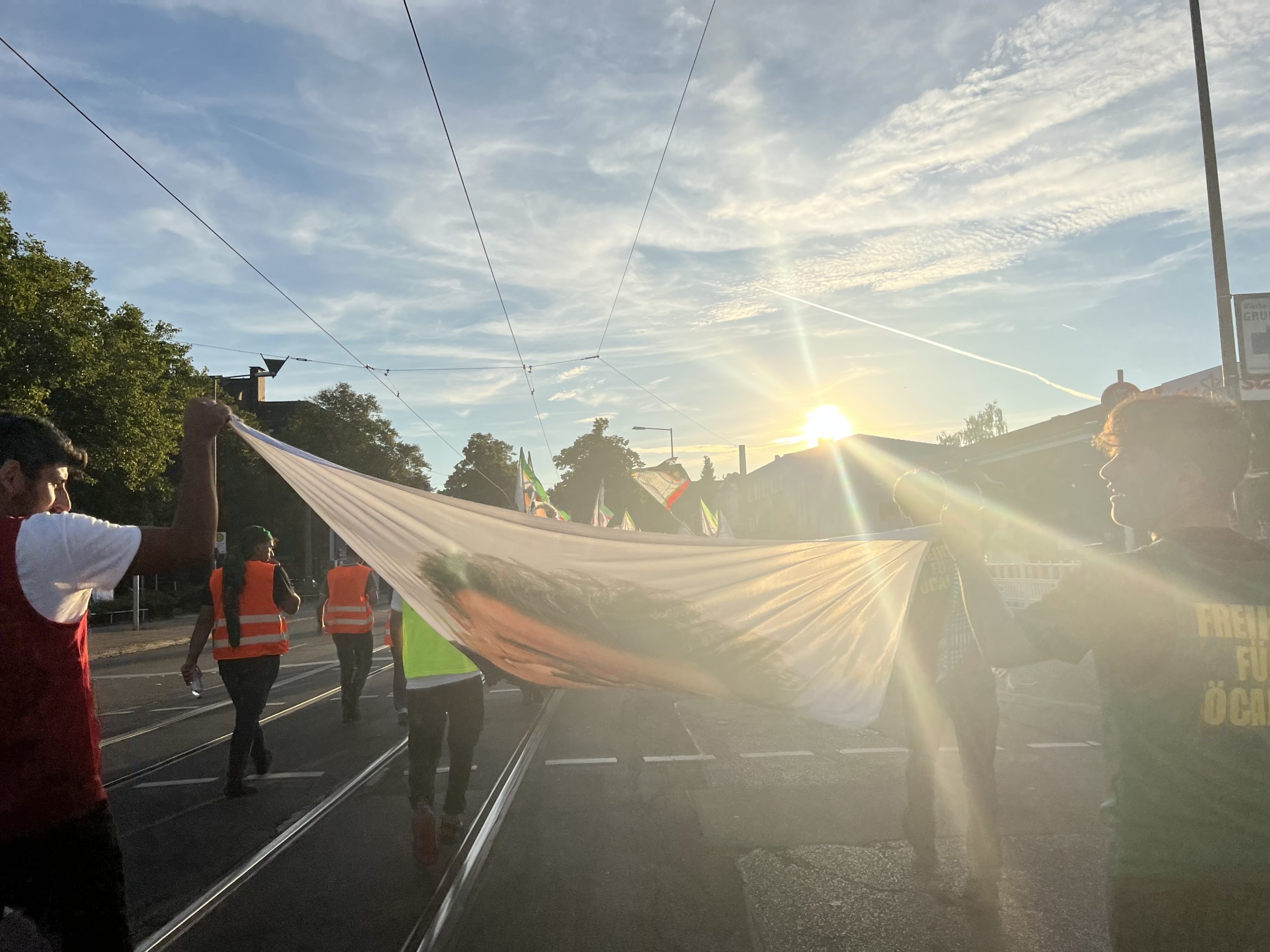 Saat 12.00’da Duisburg Bahnhof önünden başlayan eylem tüm yasak ve provokasyonlara rağmen Krefeld’e ulaşılarak tamamlandı. Yoldan geçen faşistler ve polislerin yürüyüşü provake etme girişiminin boşa çıkarıldığı yürüyüş yüksek bir motivasyonla Krefeld’e ulaştı.