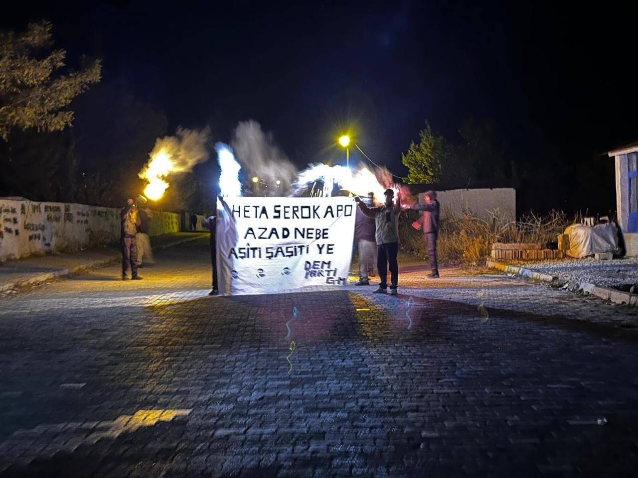 VAN- Gece saatlerinde Van’ın Yalımerez Mahallesinde DEM Parti Gençlik Meclisi üyeleri tarafından “Önder APO’ya Özgürlük, Kürt Sorununa Çözüm” hamlesi çerçevesinde pankartlı yürüyüş gerçekleştirildi.