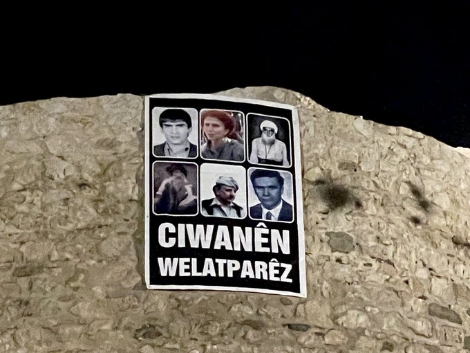 WAN – Yurtsever Gençlik tarafından Wan Kalesi’ne Sakine Cansız ve Mazlum Doğan’ın da yer aldığı ve Kürt öncüleri olan Şêx Seîd, Seyîd Riza, Dr. Qasimlo, Şehîd Dr. Şivan’ın (KDP tarafından katledildi) fotoğraflarını taşıyan bir pankart asıldı.