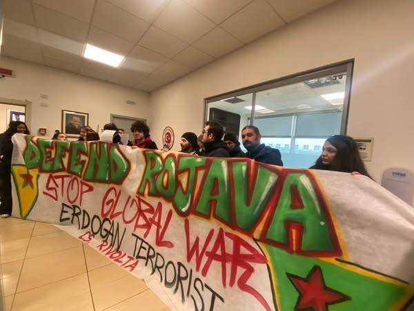 VENEDİK – Enternasyonalist gençler faşist Türk devleti ve SMO çetelerinin Rojava’ya yönelik işgal saldırılarına karşı, İtalya’nın Venedik kentindeki TC Büyükelçiliğine işgal eylemi gerçekleştirdi.