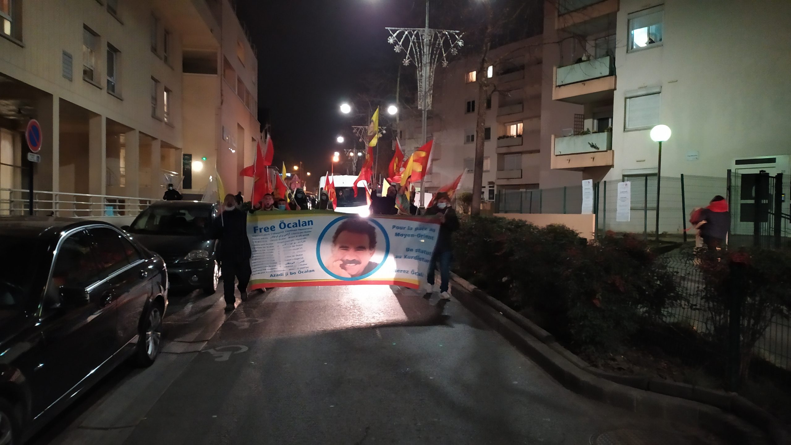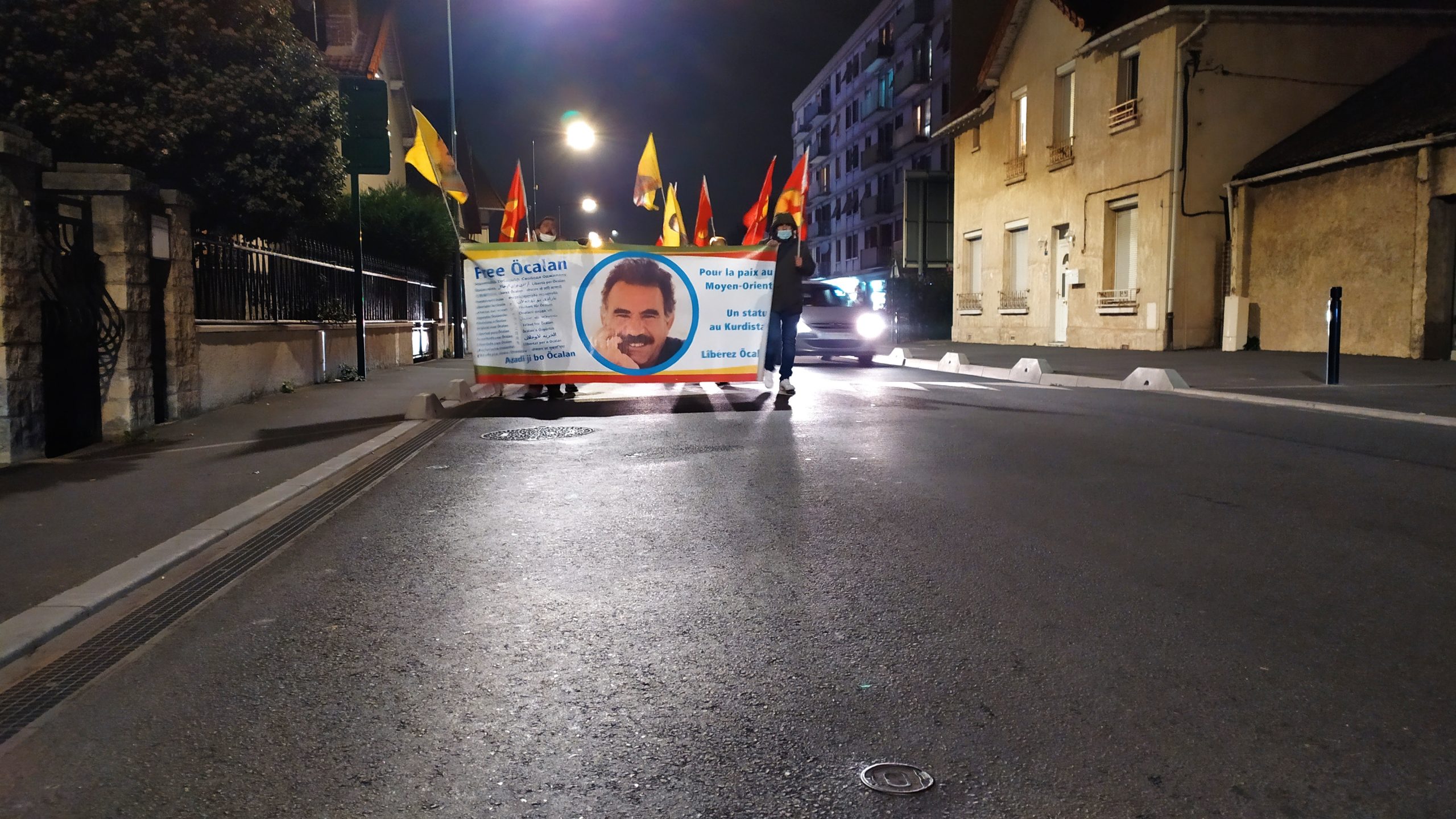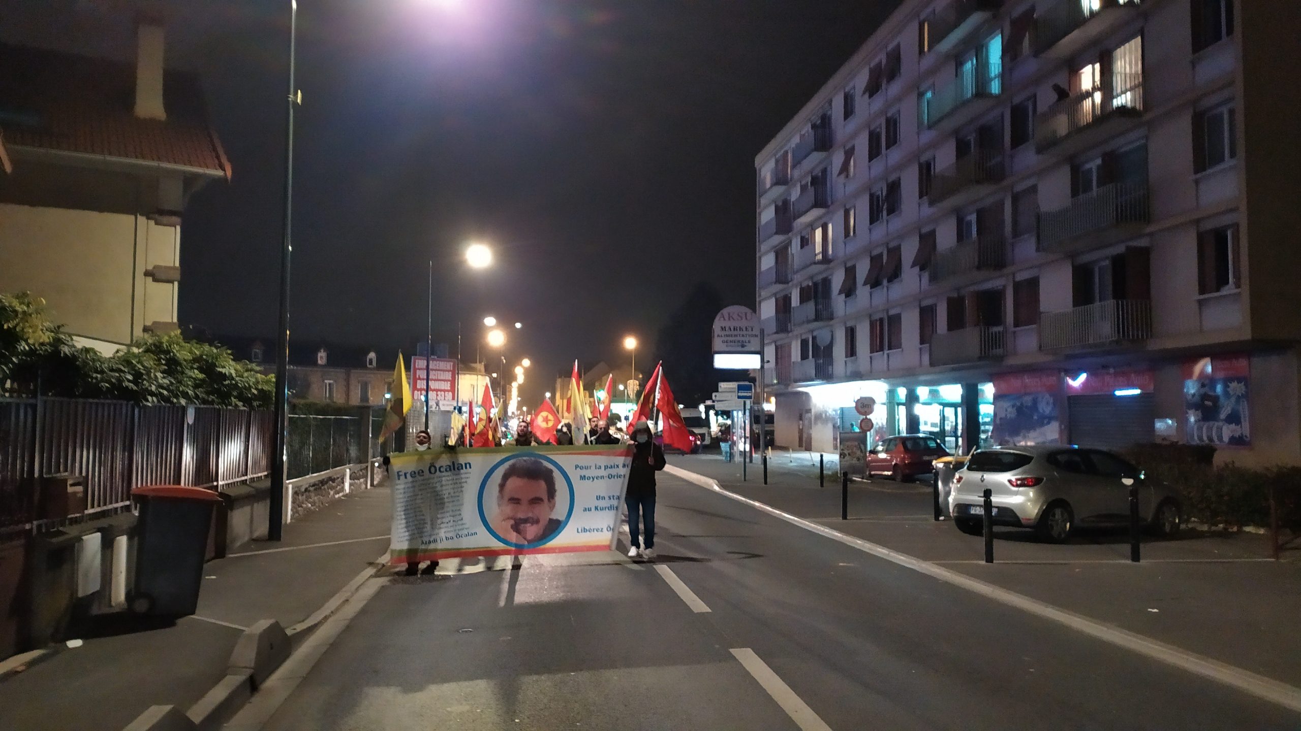 Saat 18’de Villiers Le Bel tren garı önünden başlayan yürüyüşte gençler, Halklar Önderi Abdullah Öcalan pankartı ile yürüdü.