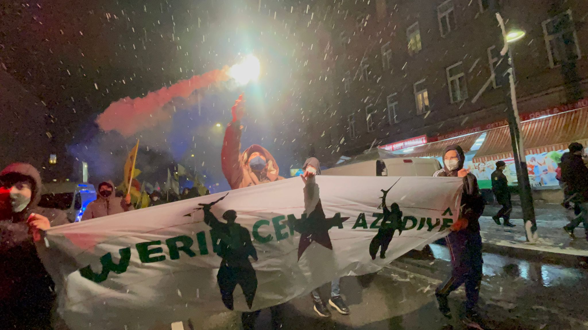 VİYANA – Akşam saatlerinde TCŞ (Tevgera Ciwanên Şoreşger) ve TekoJIN (Jinen Ciwan ên Tekoşer) aktivistlerinin yaptığı çağrı ile bir çok gencin katılımı ile PKK’nin 44. kuruluş yıldönümü için bir yürüyüş gerçekleştirildi.