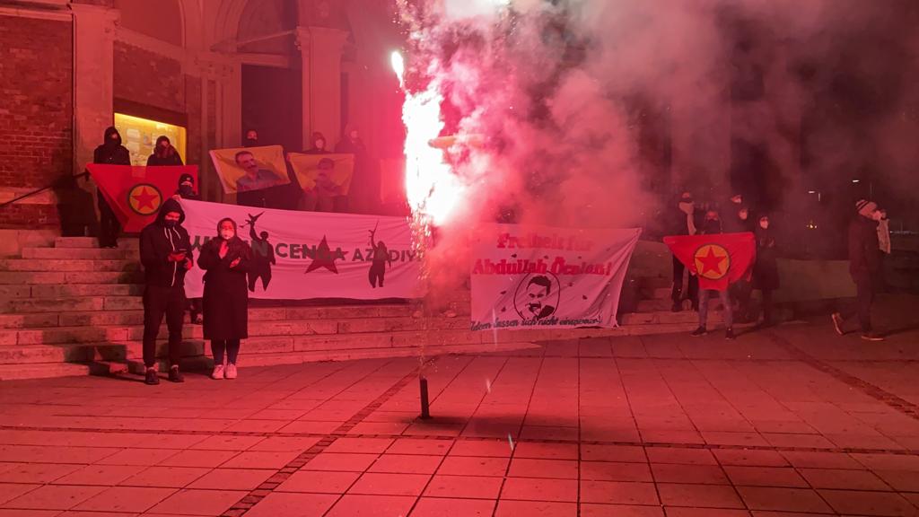 Yaklaşık iki saat süren eylem, gençler tarafından sık sık atılan“Bijî Serok APO” ve “Be Serok Jiyan Nabe” sloganlarıyla sona erdi.