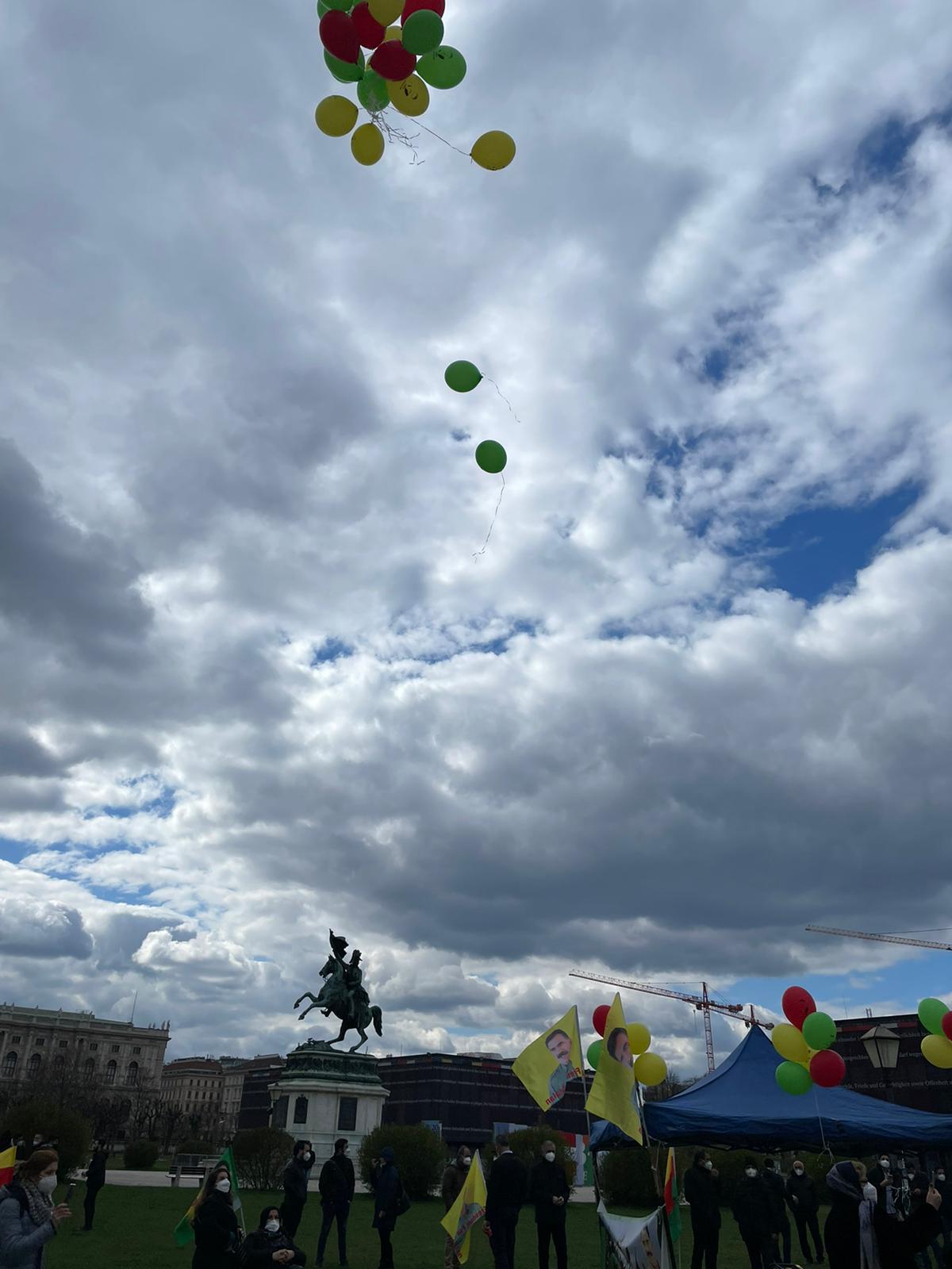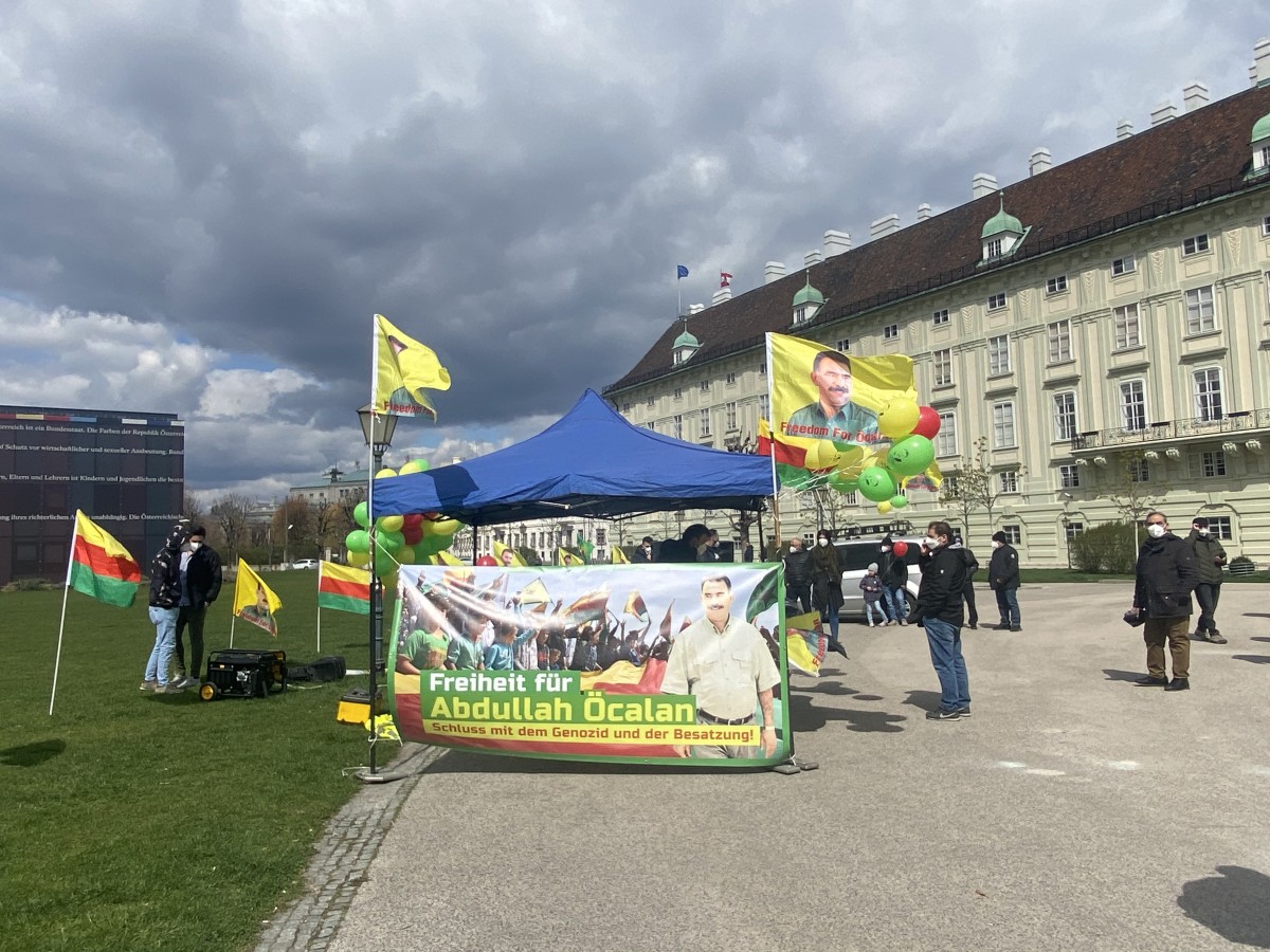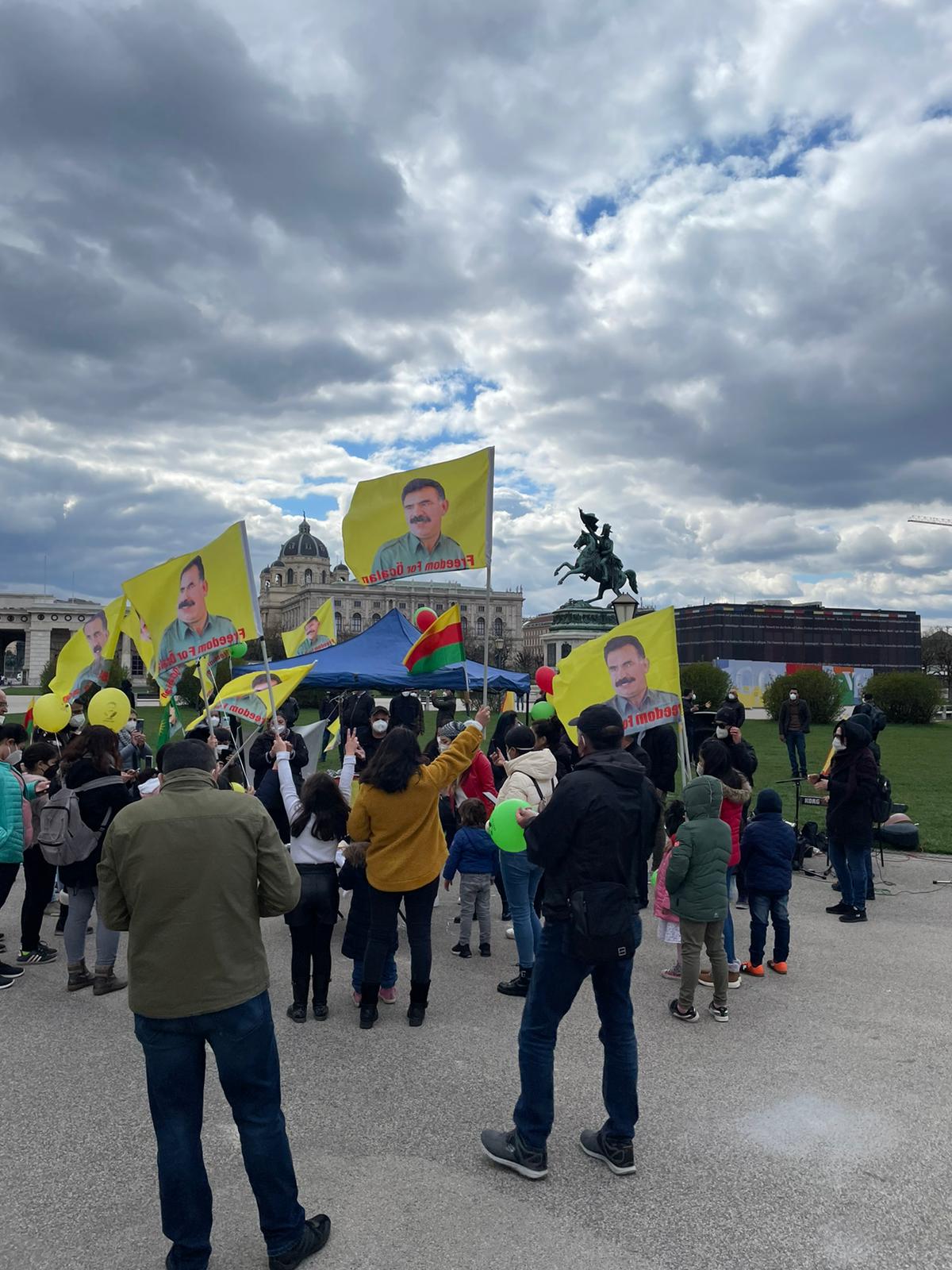 Öğlen 12’de Heldenplatz alanında halkın toplanması ile başlayan etkinlikte ilk olarak Kürdistan devrim şehitleri anısına saygı duruşu yapıldı. Etkinlik alanı, Önder Öcalan’ın posterleri ve balonlarla süslenirken, müzik dinletisi için bir de sahne kuruldu.