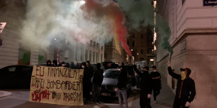 Eylem esnasında gençler, Viyana’da bulunan Avrupa Birliği Bürosuna yönelik bir eylem gerçekleştirdiler. Gençler boyalar ile binayı hedef aldılar. Bu şekilde gençlerin amaçları dikkatleri çekebilmek oldu.