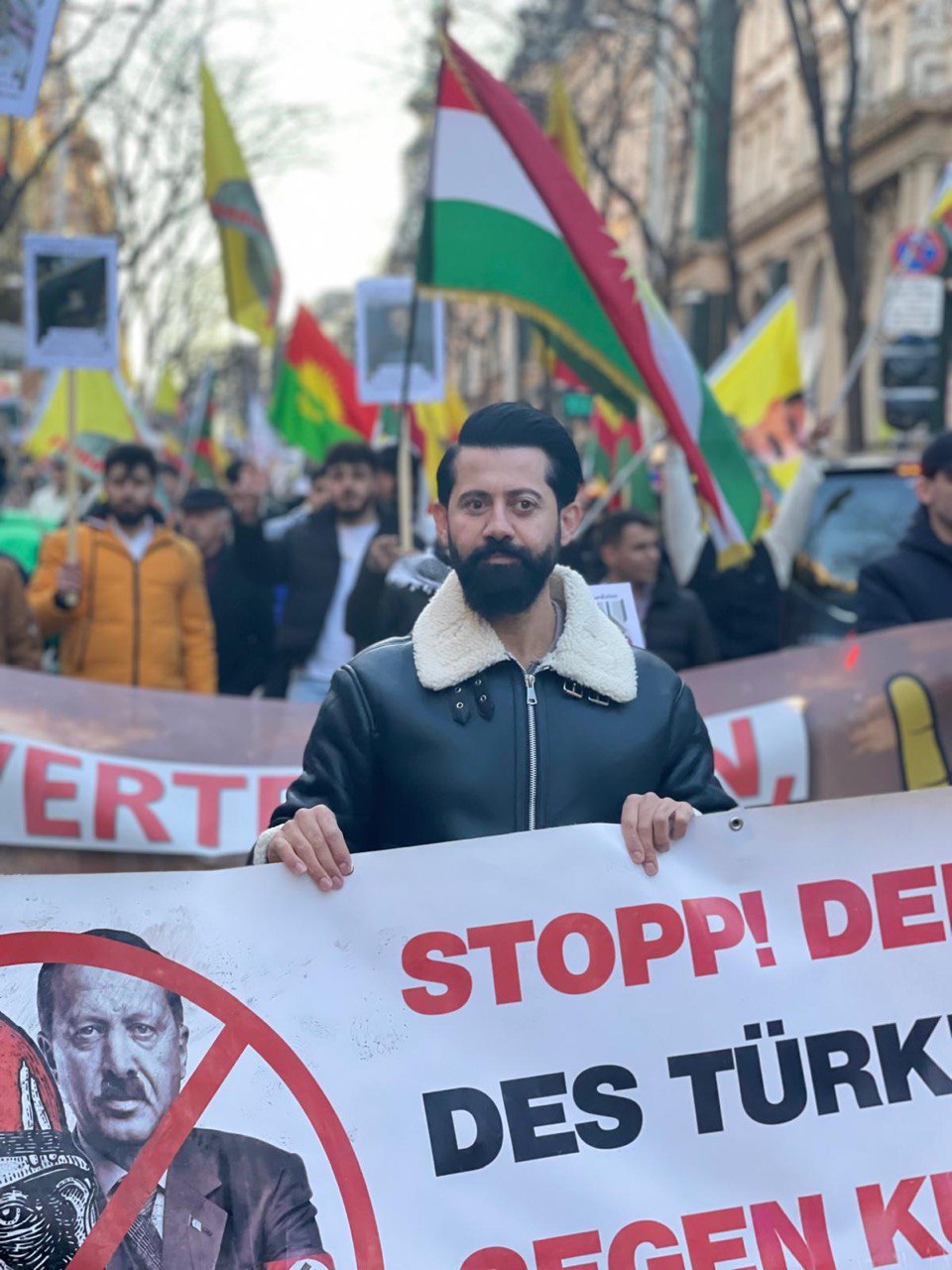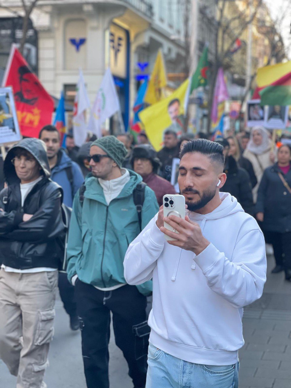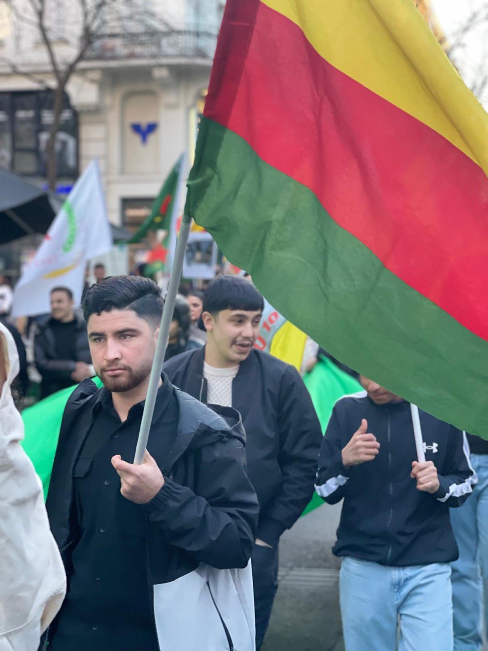 Eylemciler sık sık “Terörist Erdoğan”, “Şehîd Namirin”, “Bijî Serok APO”, “Bijî Berxwedana Kobanê” ve “Bijî Berxwedana Rojava” sloganları atarak Kürt halkının direnişini selamladı.