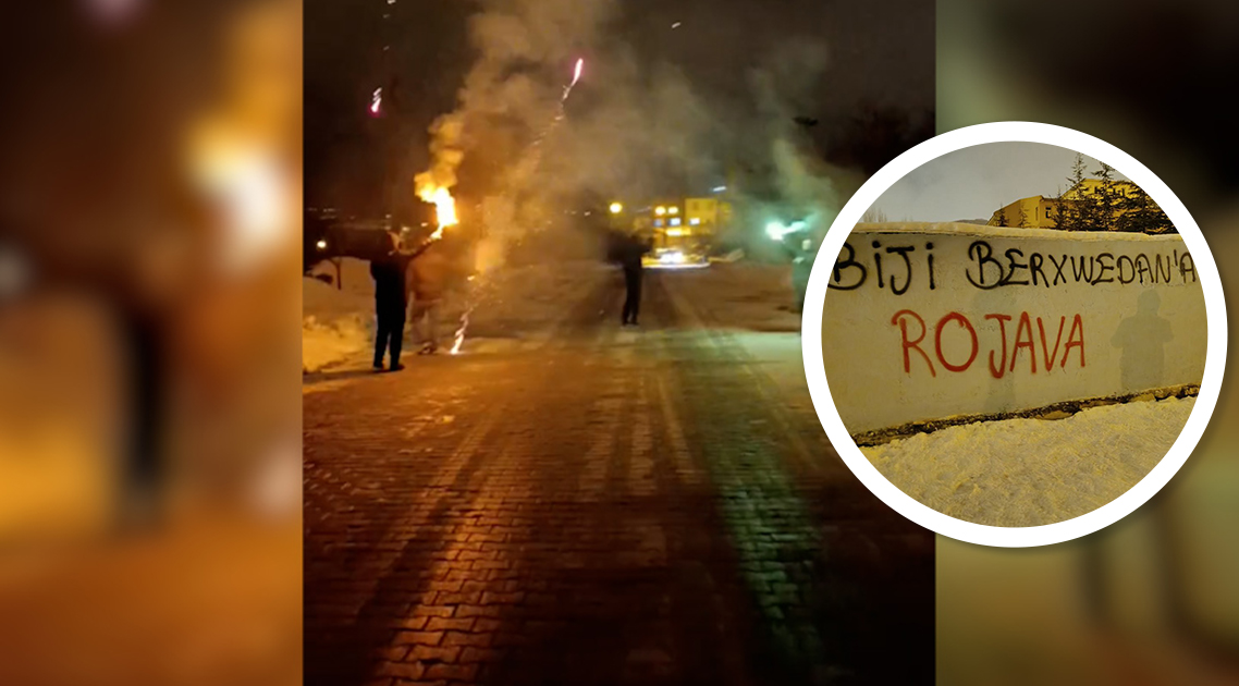 WAN – Wan’ın İpekyolu ilçesi Yalım Erez mahallesinde yurtsever gençler HTŞ ve Türk devletine bağlı çetelerin Halep’in Şêxmeqsûd ve Eşrefiyê mahallelerine yaptıkları saldırılara karşı eylem yaptı. Yurtsever gençler mahallede havai fişeler, duvar yazılamaları ve sloganlar ile Halep’e yapılan saldırıları protesto etti.