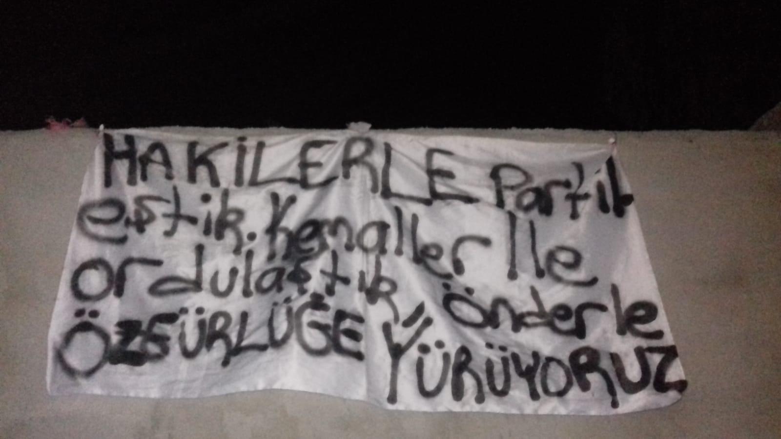Wan’ın Sihke caddesine gençler, “Hakilerle Partileştik, Kemallerle Ordulaştık, Önderlikle Özgürlüğe Yürüyoruz” yazılı pankart astı.