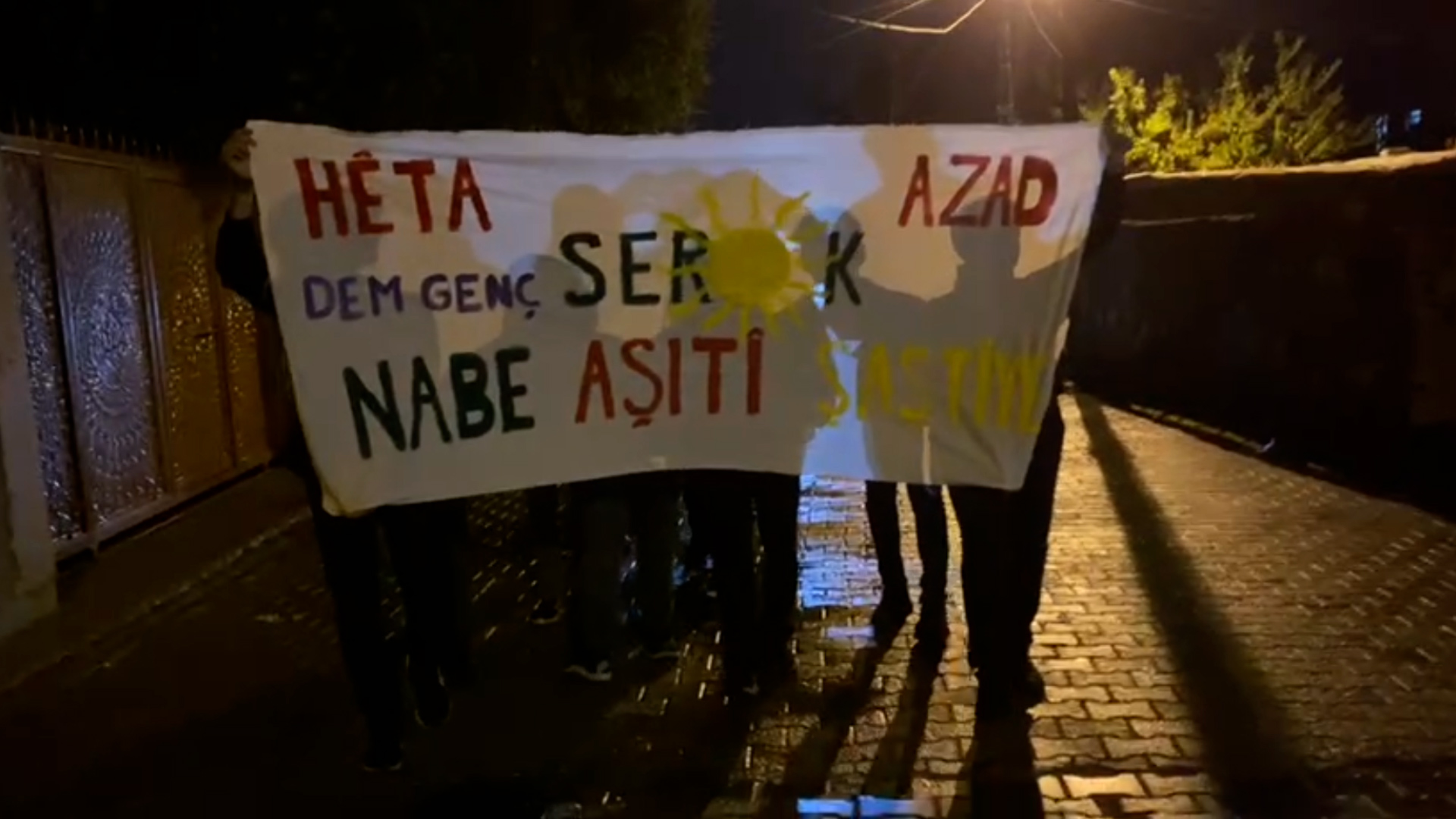 Akşam saatlerinde ise, gençler “HÊTA SEROK AZAD NEBE AŞITÎ ŞAŞITIYE” yazılı pankartları taşıyarak, Önder Apo’nun özgürlüğü için yürüyüş gerçekleştirdi. Yürüyüş sırasında gençler, “BIJÎ BERXWEDANA ÎMRALΔ sloganları atarak, Önder Apo’nun fiziki özgürlüğüne ve ayrıca özel savaş politikalarına dikkat çekti.