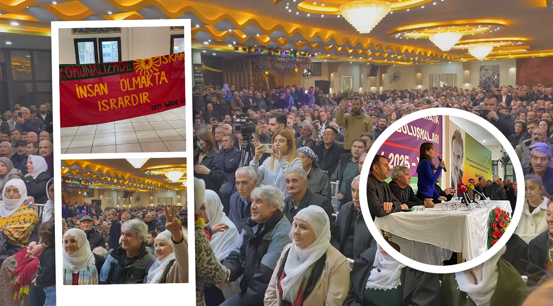WAN – Wan’da düzenlenen halk toplantısında salon dolup taştı. Yüzlerce kişi de buluşmayı salon dışında takip etti. Toplantı öncesinde, şehit düştüğü açıklanan YJA Star Merkez Karargâh Komutanlığı üyesi Berfîn Nûrhaq ile Sema Roza, marşlar ve sloganlarla anıldı. Katılımcılar, salona “Bijî Serok Apo” sloganlarıyla girerken, salonda Önder Apo’nun fotoğrafının yer aldığı pankartlar asıldı. Ayrıca gençler salonda sık sık “Gençlik Apo’nun Fedaisidir“ sloganını attı.