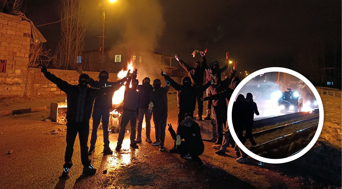Yurtsever Gençler sokaklarda ateş yakarak, yolu trafiğe kapatarak, slogan atarak ve havai fişeklerle eylem gerçekleştiriyor.