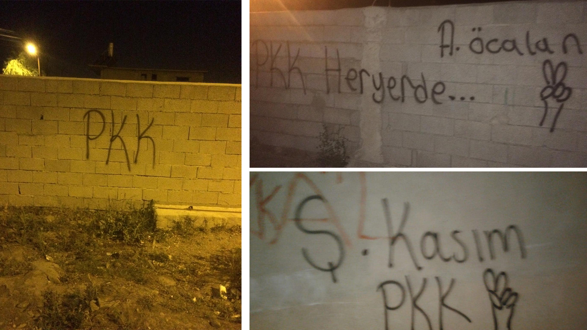 Wan gençliği Wan’ın Vali Mithat Bey mahallesinde ” Şehit Kasım Engin” , “Şehit Namırın” , “PKK Her Yerde” ve “PKK” yazılamalarını yazdı.