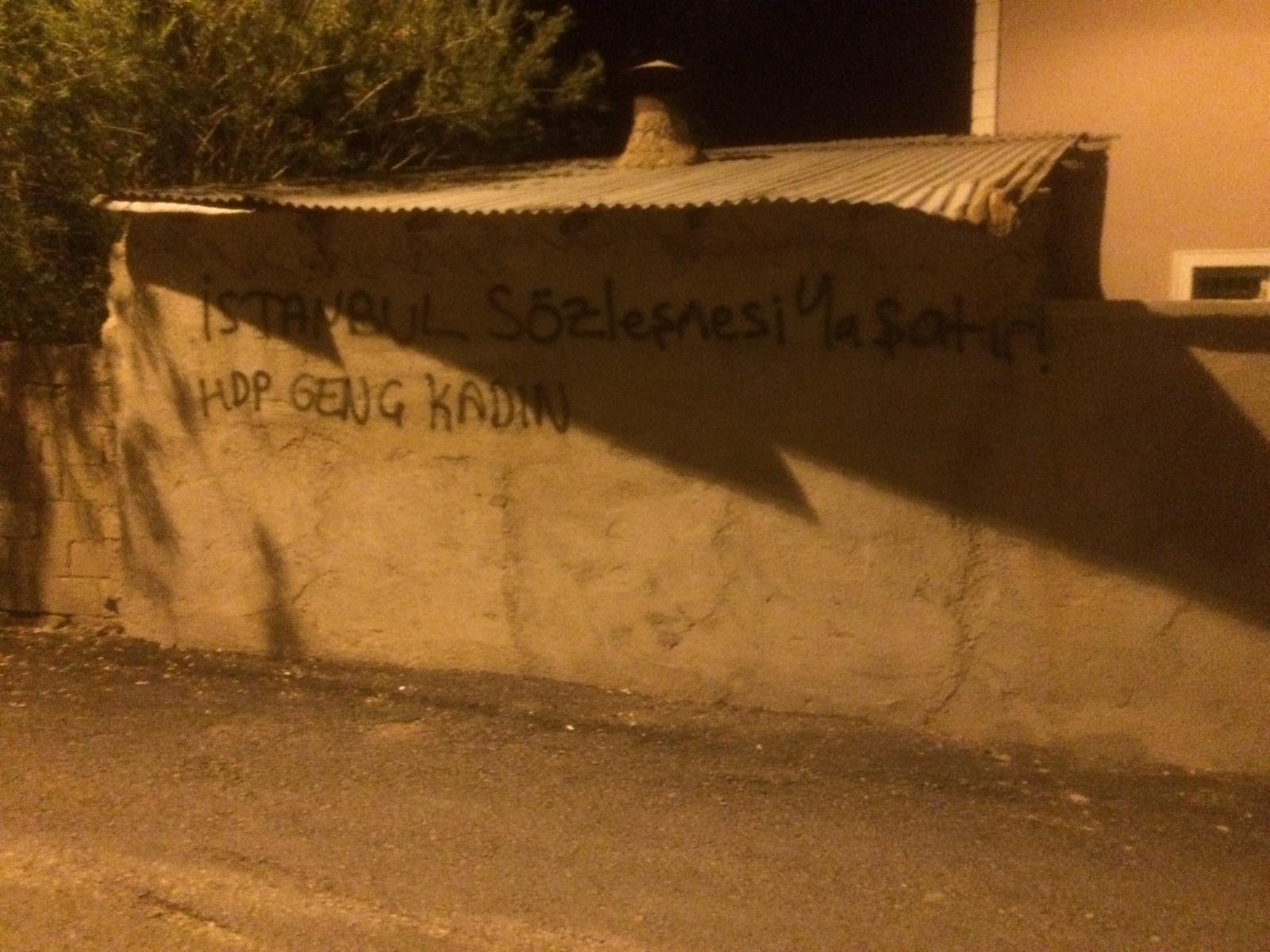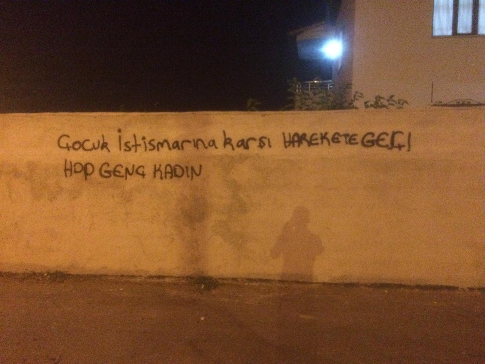 WAN- HDP Genç Kadın Meclis’i Wan’ın Yenimahalle ve Karşıyaka mahallesinde çocuk tecavüzlerine, kadın katliamlarına ve İstanbul Sözleşmesine dönük saldırılara karşın yazılama çalışması yaptı.
