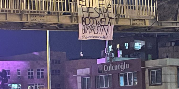 Riha’nın Haliliye ilçesinde bulunan Atatürk Bulvarı’ndaki üst geçide Kürtçe, “Rojvelat’ın hesabını soracağız” pankartı asıldı.